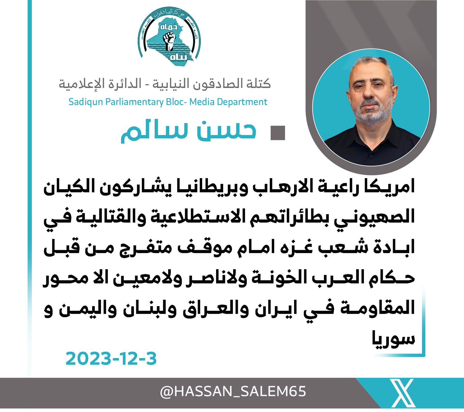 رداً على أستهداف الحشد الشعبي .. سالم: حان الوقت لتمزيق الصمت وطرد قوات الاحتلال من العراق