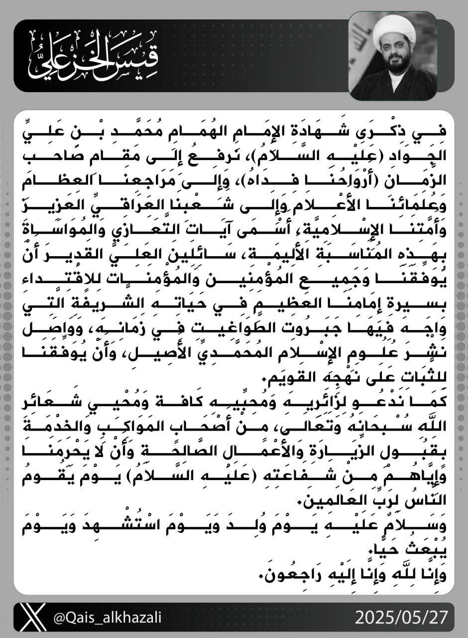 الشيخ الخزعلي يؤكد جاهزية “الصادقون” لخوض الانتخابات المقبلة ويعلن نعيم العبودي مرشحًا أول في بغداد