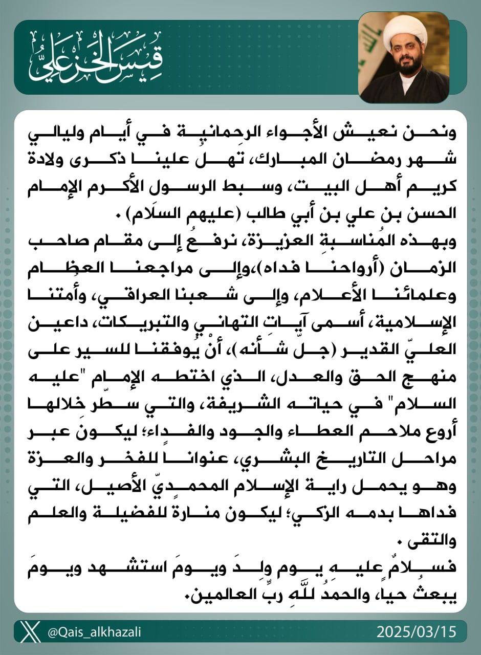 زار الأمين العام لحركة عصائب أهل الحق، سماحة الشيخ قيس الخزعلي، اليوم الجمعة، ام الشهداء الحاجة المجاهدة "أم وسام وعصام وحسام العلياوي"، تقديرًا لتضحياتها الكبيرة وصبرها على فقدان أبنائها...