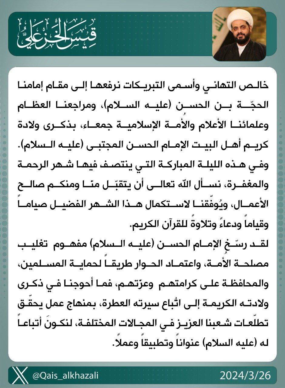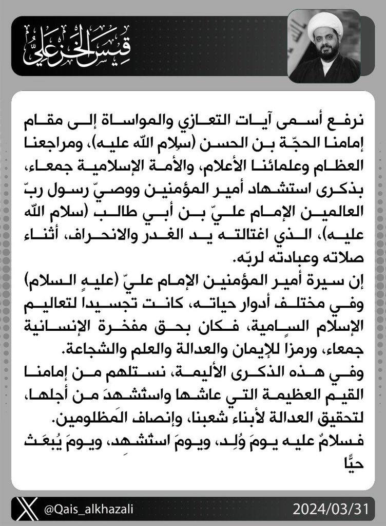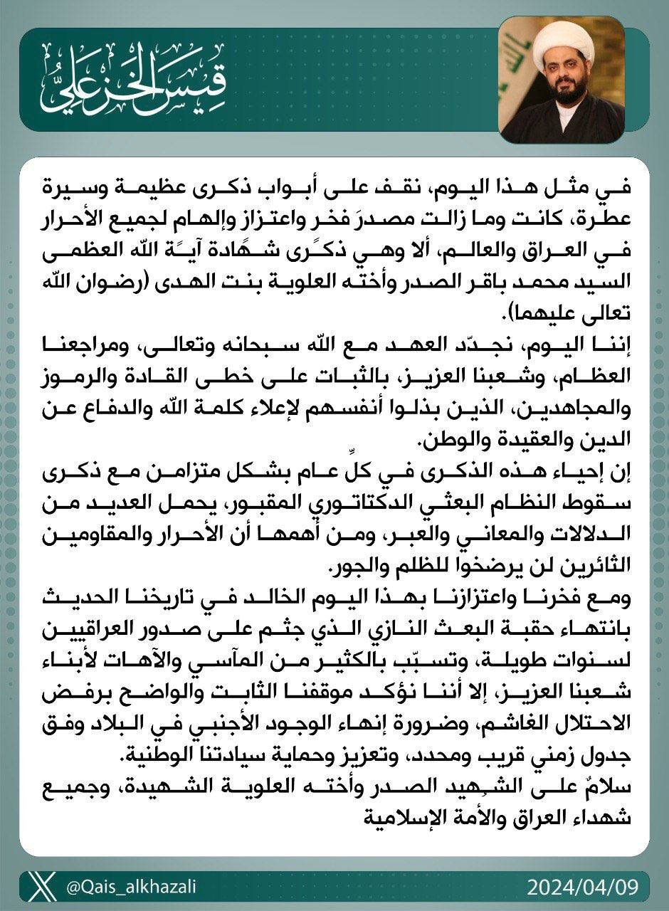 بحث الأمين العام لحركة عصائب أهل الحق ، سماحة الشيخ قيس الخزعلي ، اليوم الأثنين ، مع رئيس تيار الحكمة السيد عمار الحكيم سبل دعم الحكومة في المجالات الخدمية و التنموية ومسار مفاوضات أخراج...