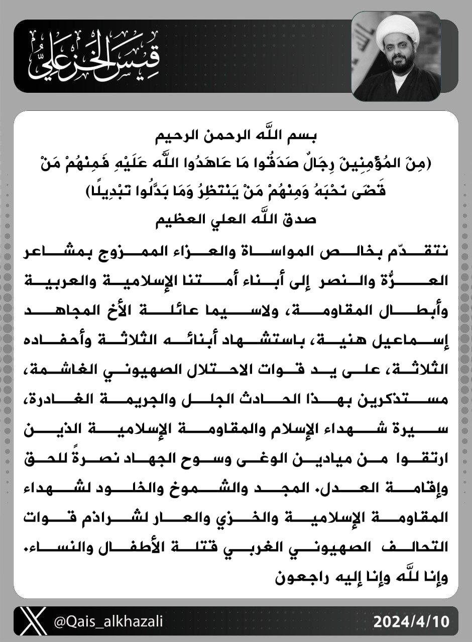 الشيخ الخزعلي يبحث مع السيد الحكيم سبل دعم الحكومة ومسار مفاوضات أخراج القوات الأمريكية من العراق