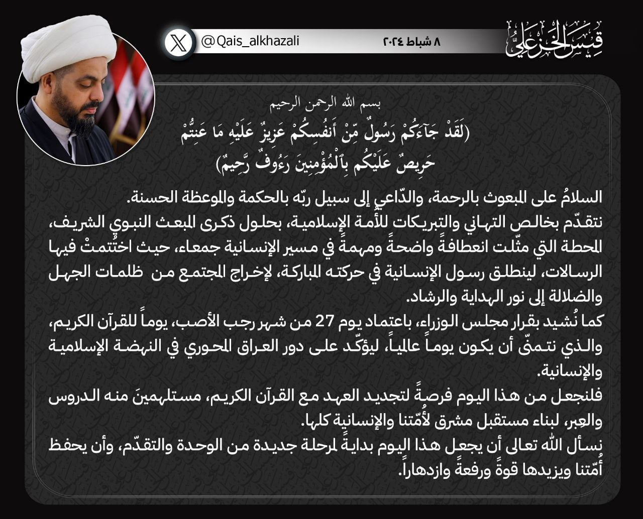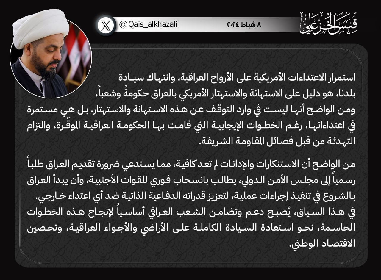 استقبل الأمين العام لحركة عصائب أهل الحق، سماحة الشيخ قيس الخزعلي، رئيس مجلس الوزراء السيد محمد شياع السوداني، في مكتبه ببغداد. وذكر بيان للمكتب الأعلامي للشيخ الخزعلي، ان سماحته أشاد بجهود...