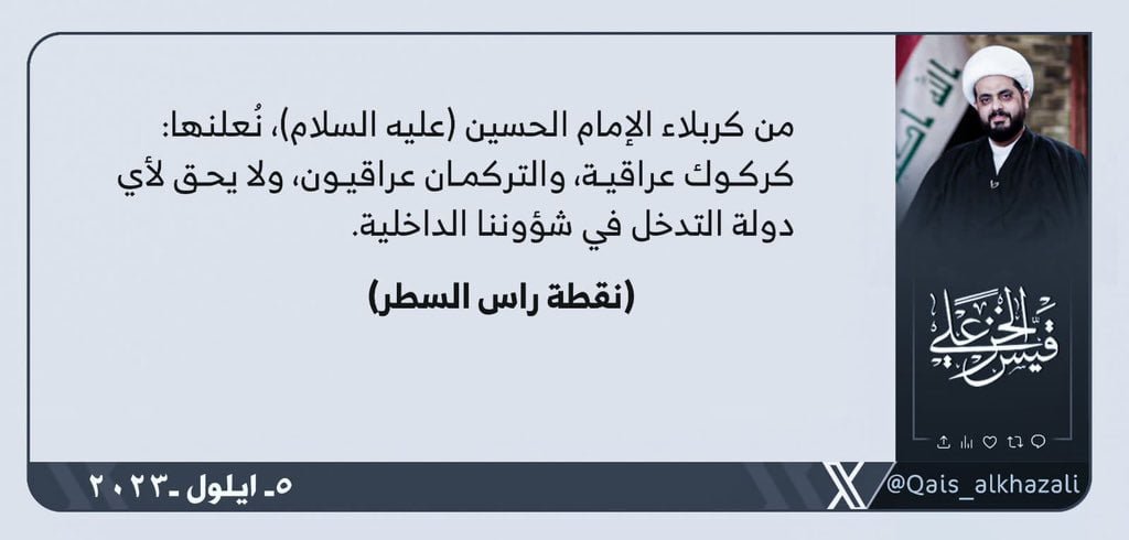 المزيدأكد الأمين العام لحركة عصائب أهل الحق ، سماحة الشيخ قيس الخزعلي ، اليوم الثلاثاء ، رفضه أي تدخل في شؤون البلاد الداخلية ، و فيما اعلن من كربلاء ان محافظة كركوك عراقية ، اشار الى ان المكون...