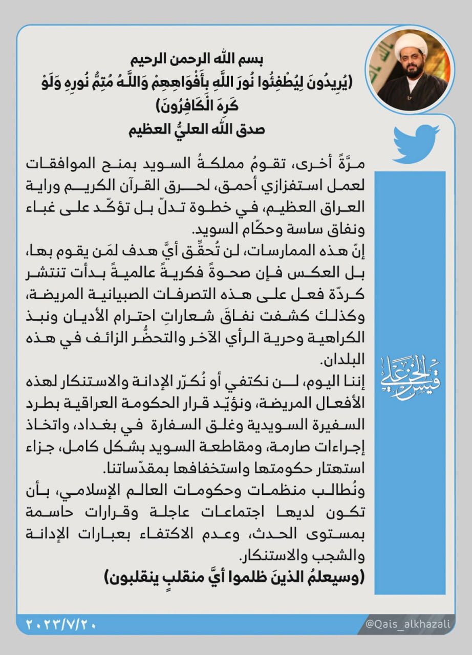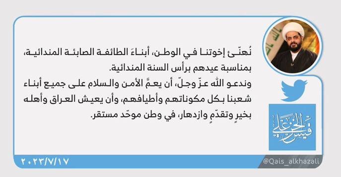 بحث الأمين العام لحركة عصائب أهل الحق، سماحة الشيخ قيس الخزعلي اليوم الأحد مع السيد عمار الحكيم، تطورات الشأن السياسي العام والاستحقاقالتشريعي القادم بعد عودة مجلس النواب لممارسة عمله بفصل...