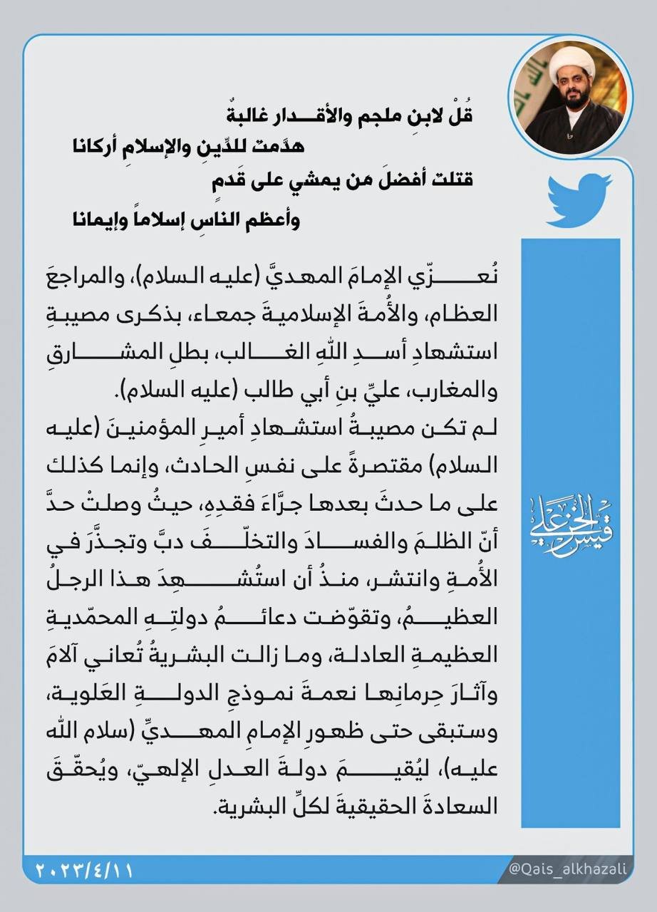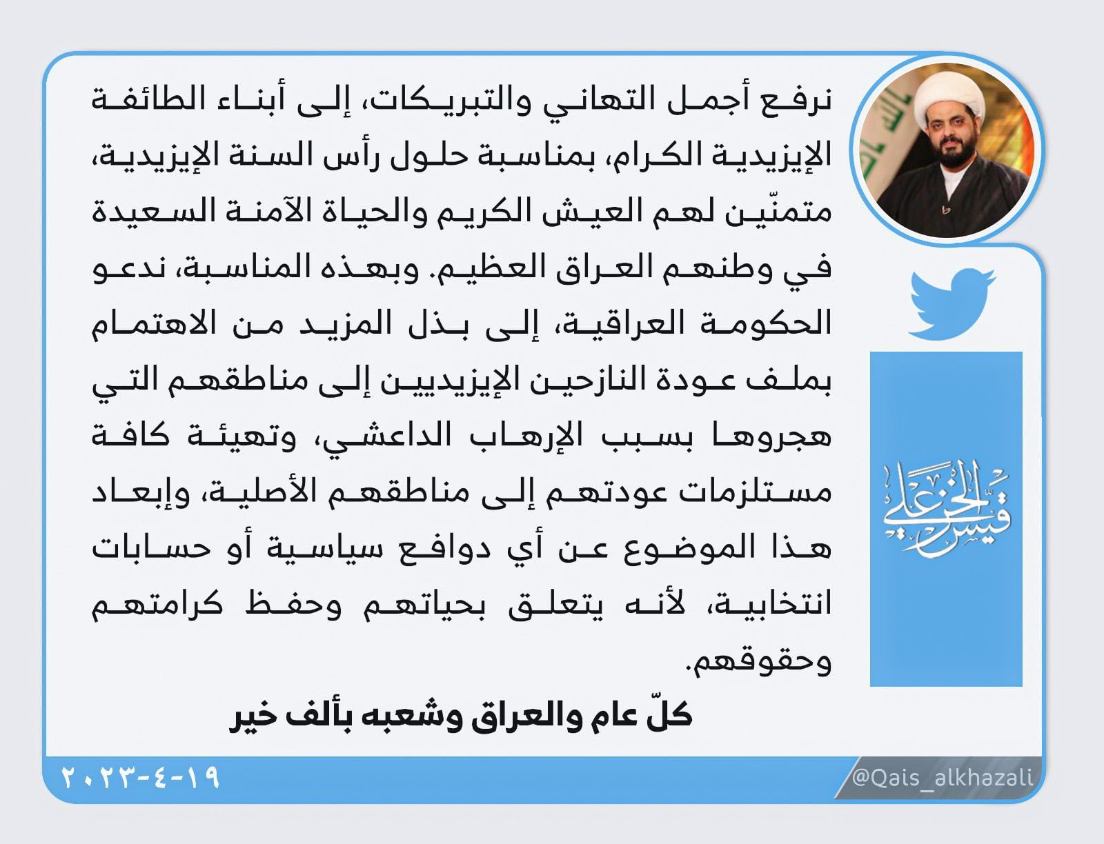 الشيخ الخزعلي: اسرائيل هي العدو الأول للعراق و تقف وراه تدميره و أثارة الفوضى