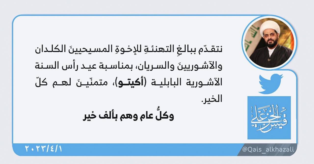استذكر الأمين العام لحركة عصائب أهل الحق ، سماحة الشيخ قيس الخزعلي ، اليوم الأحد ، الذكرى العشرين لسقوط الطاغية و أحتلال العراق ، و التي تتزامن مع استشهاد الفيلسوف الكبير السيد الشهيد محمد...