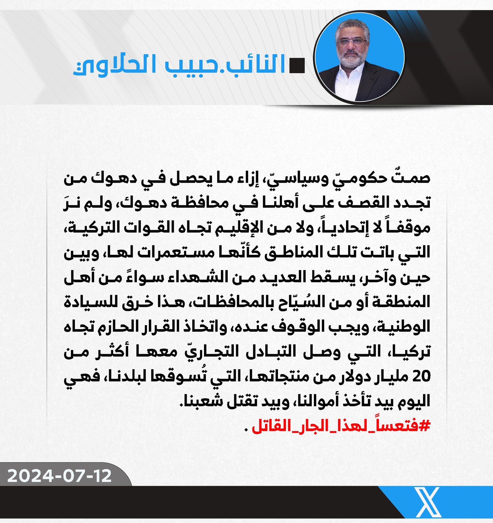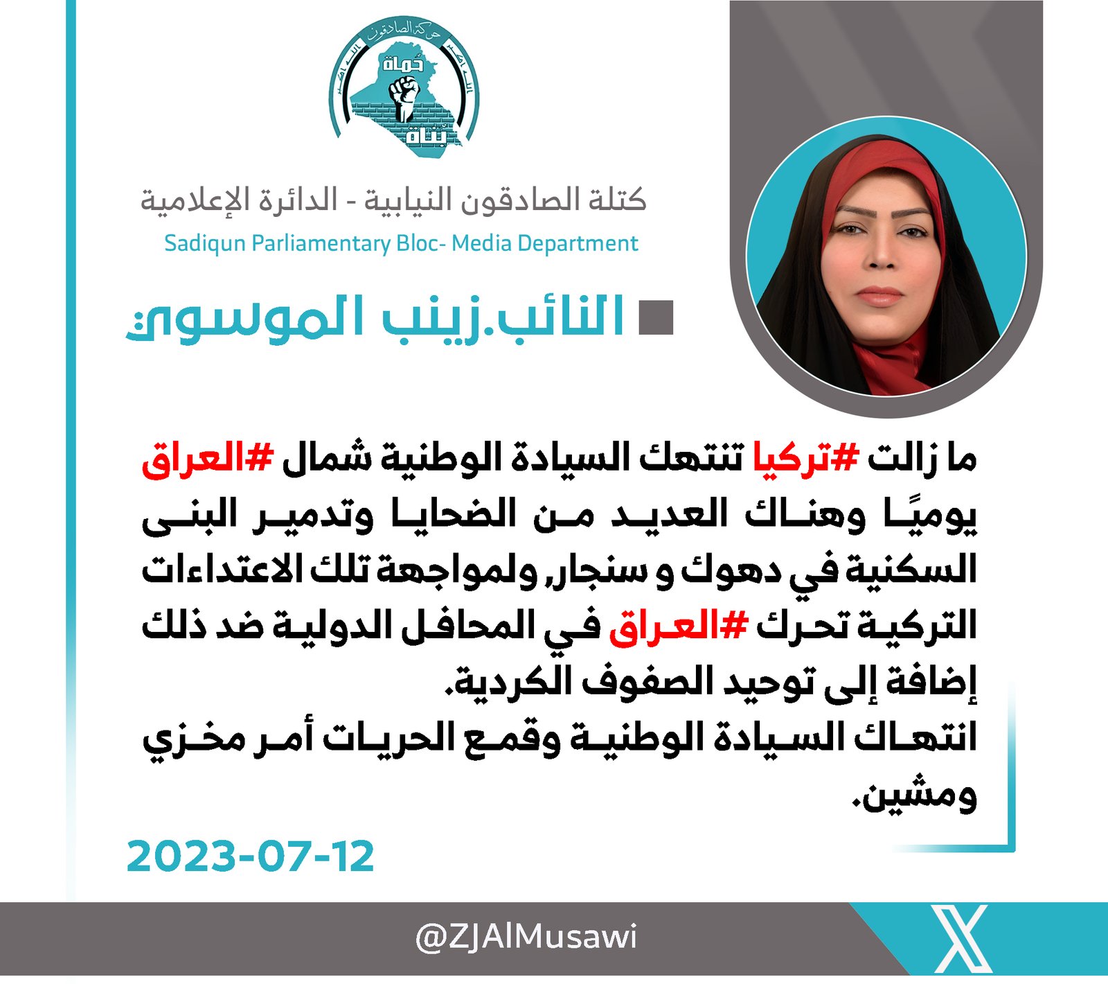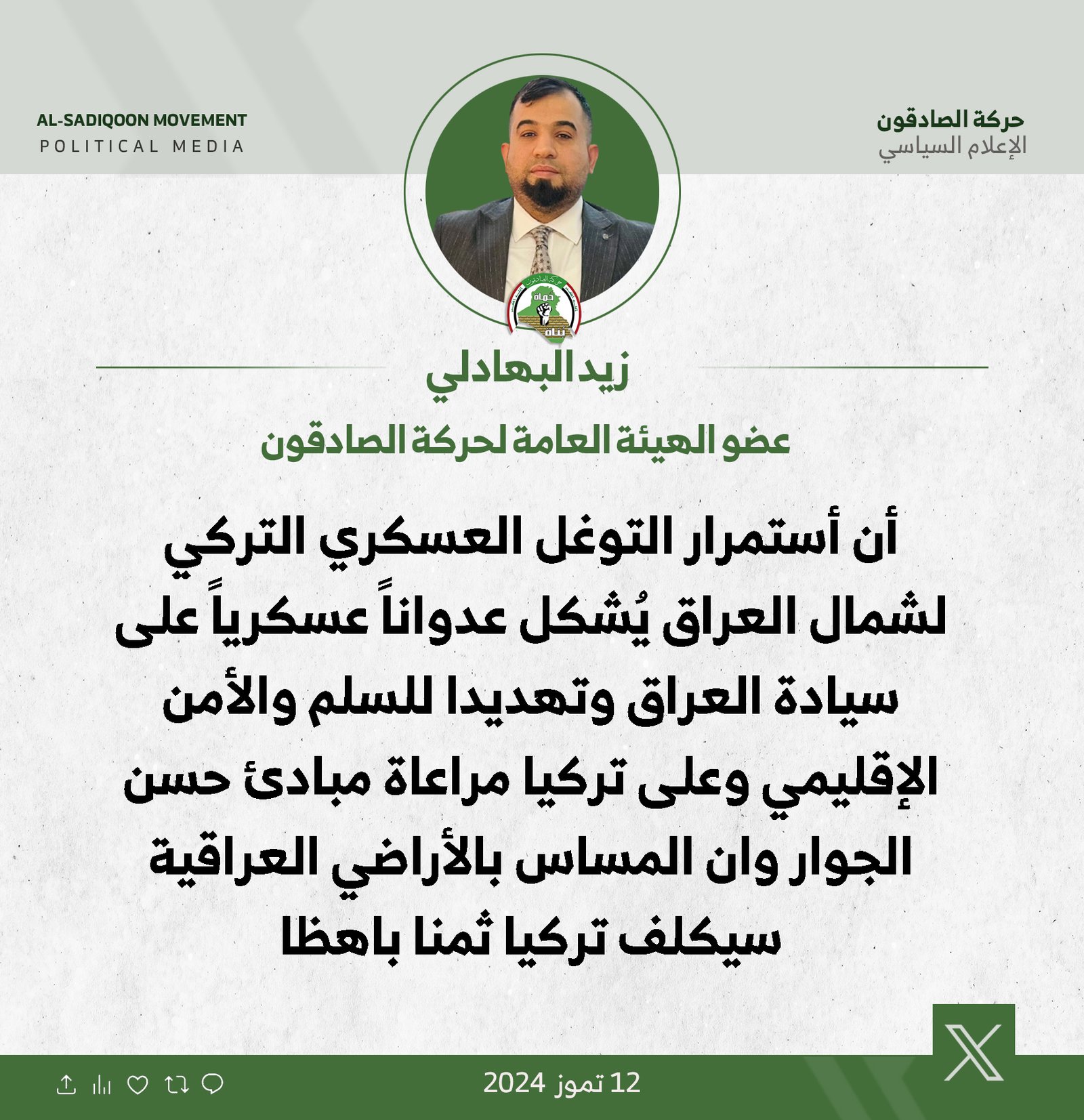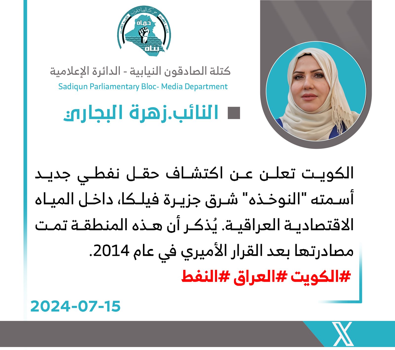 اكد المتحدث بأسم كتلة الصادقون، محمد البلداوي، الاثنين، ان اتفاقية مد انبوب البصرة العقبة النفطي من الاتفاقيات السيادية ولا يمكن للحكومة تمريرها او تنفيذها الا بعد التصويت عليها من قبل مجلس...