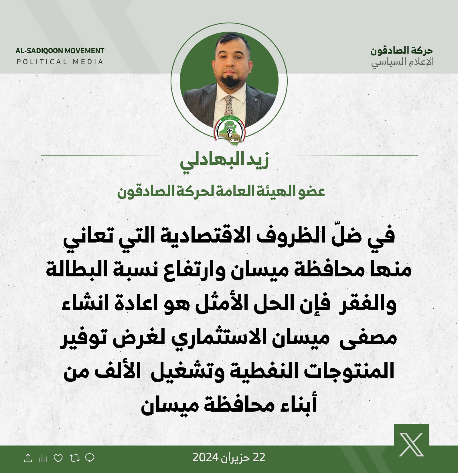 تثميناً لتضحياتهم .. البجاري تدعو حكومة البصرة الى تخصيص قطع اراضي لأبناء الحشد الشعبي