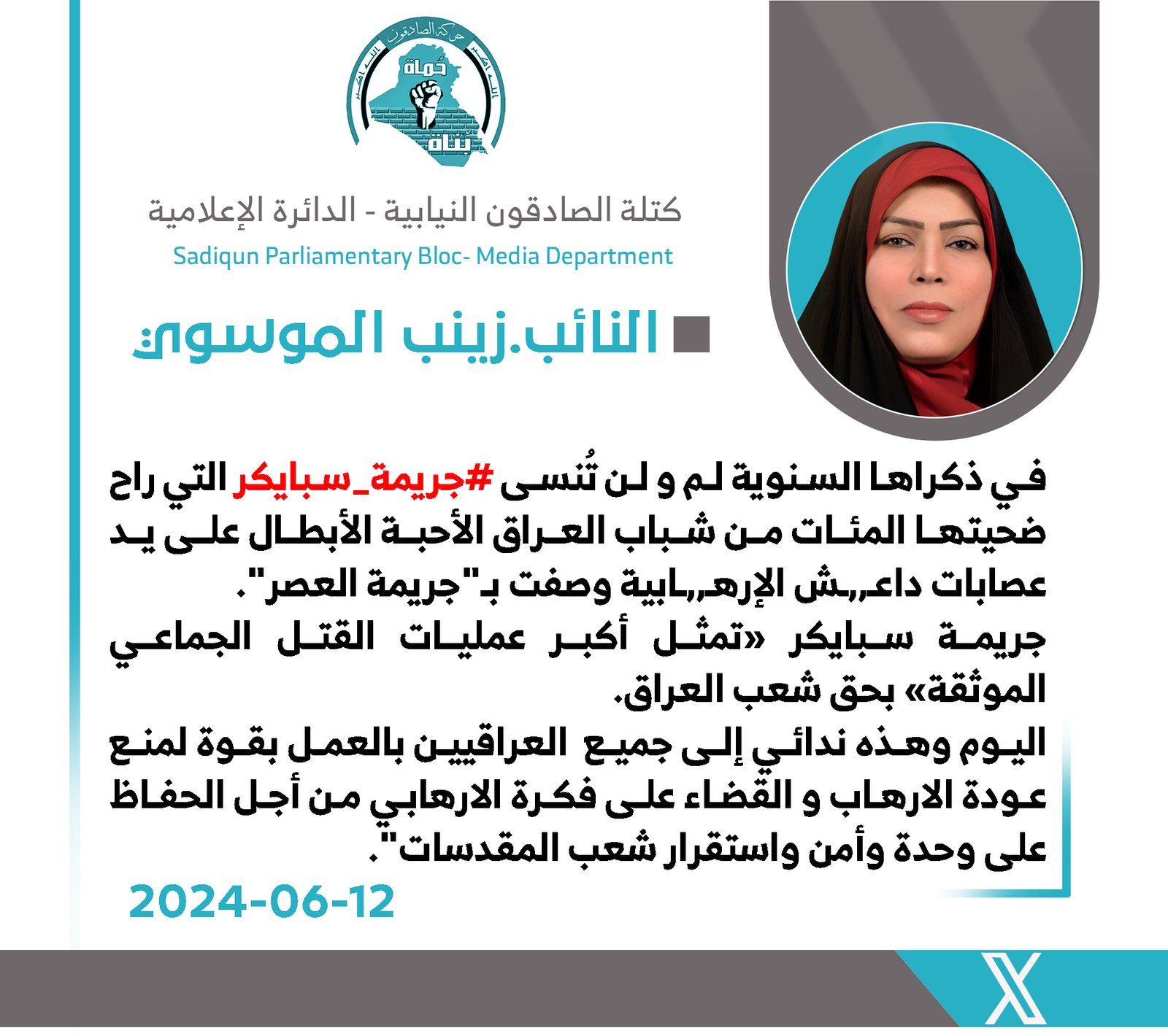 السلطاني: جريمة سبايكر جسدت أنحطاط القيم الإنسانية لمن عاثوا في الأرض فساداً وبينت وحشية داعش الأرهابي 115 ... المزيد