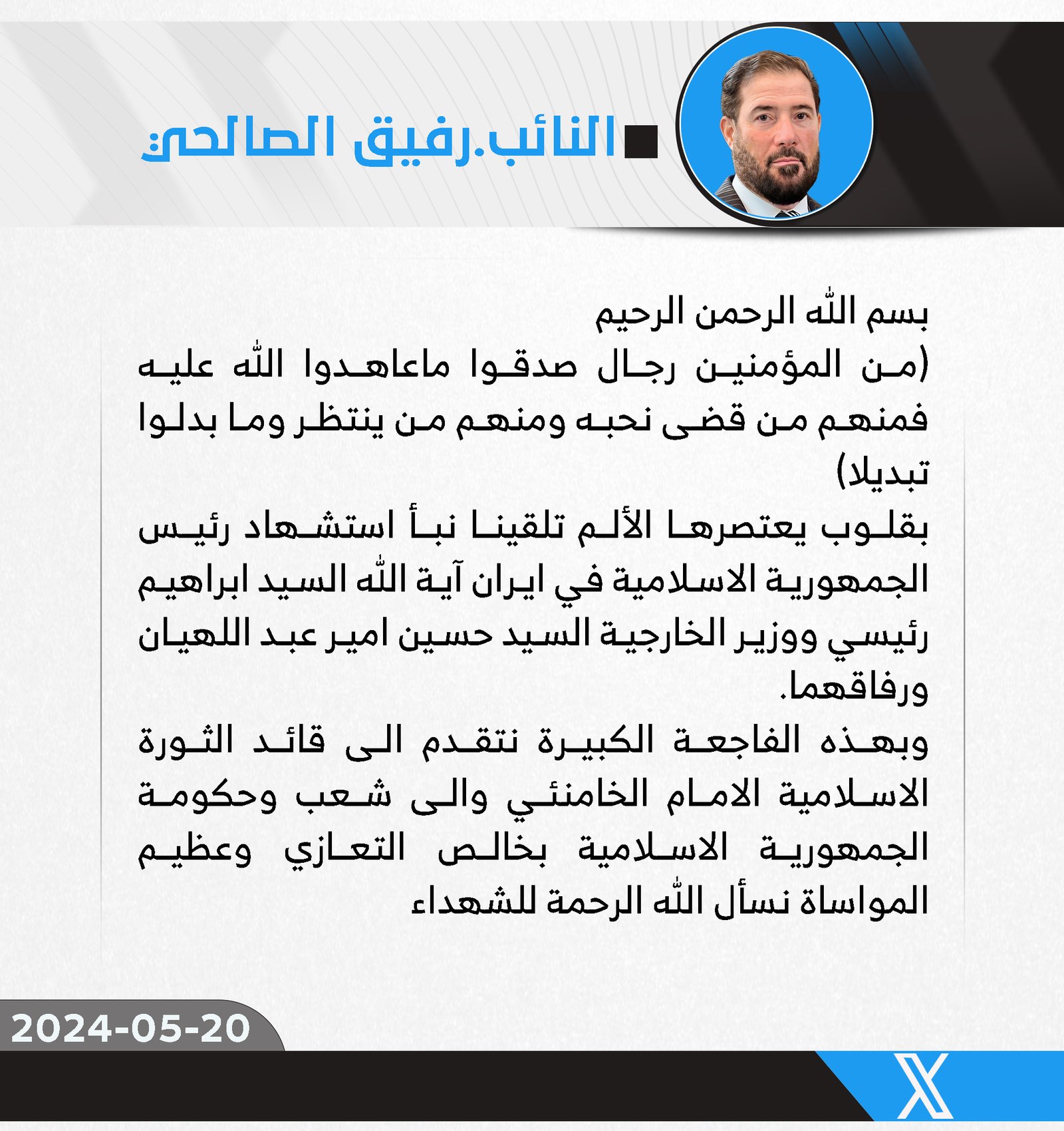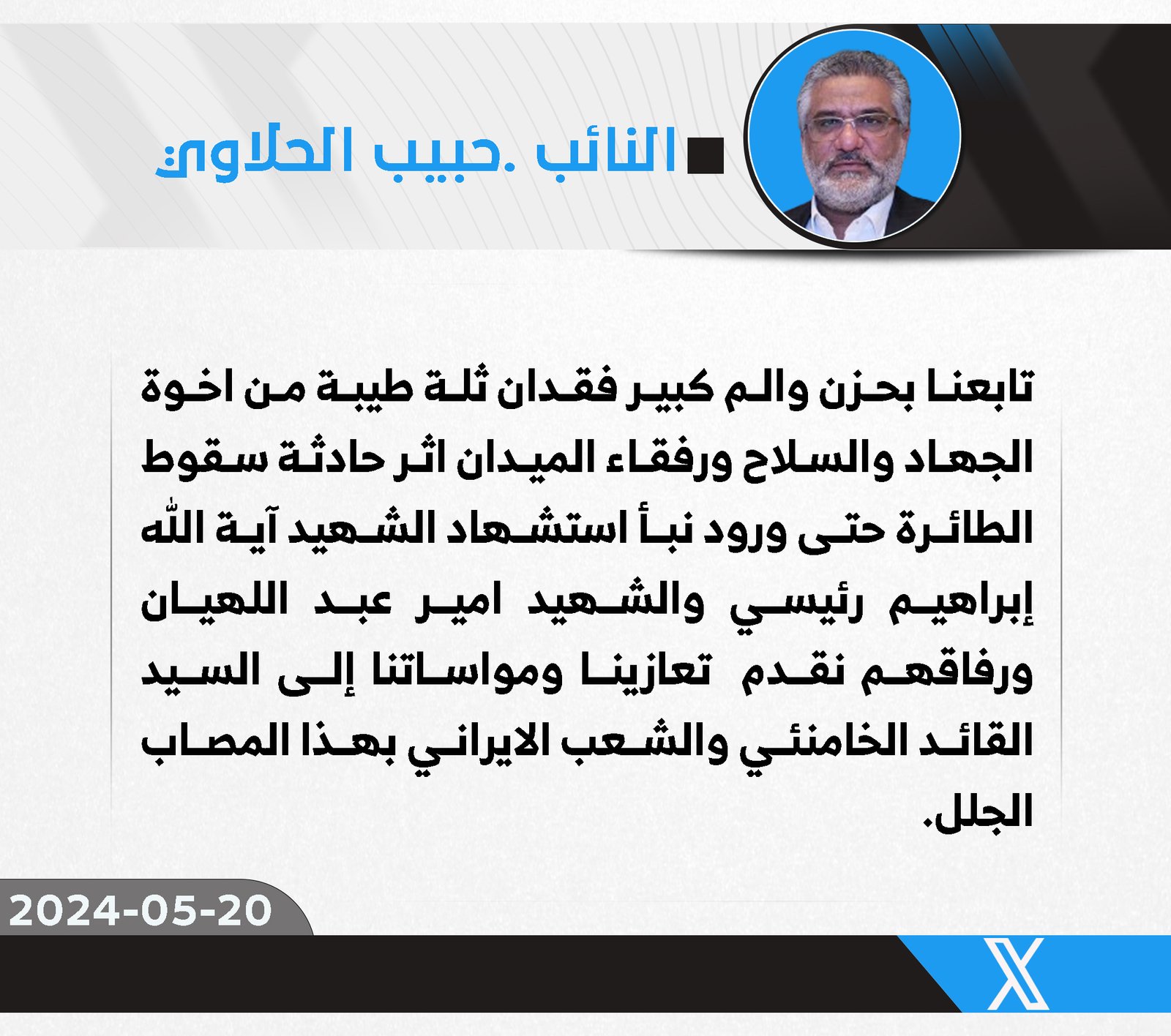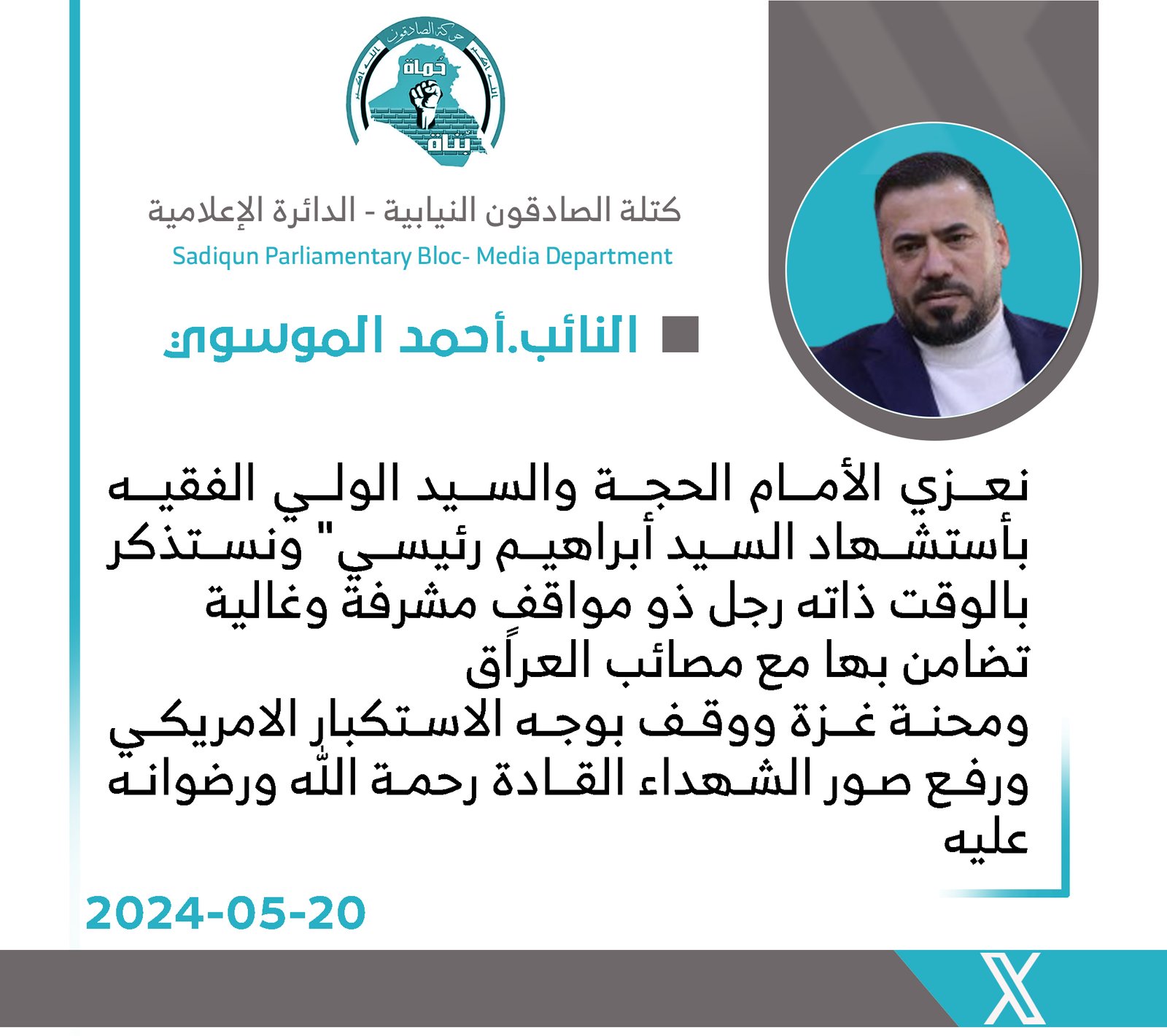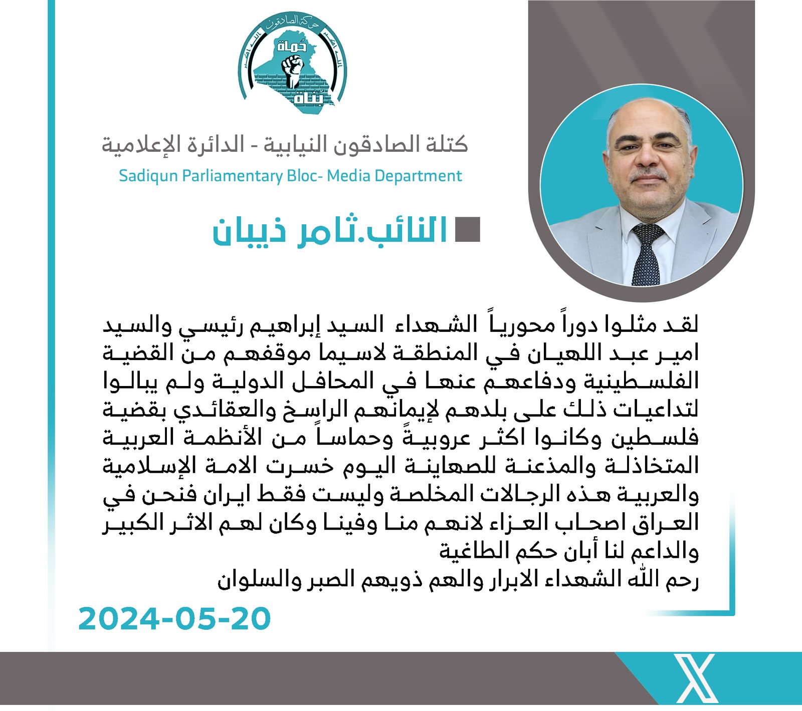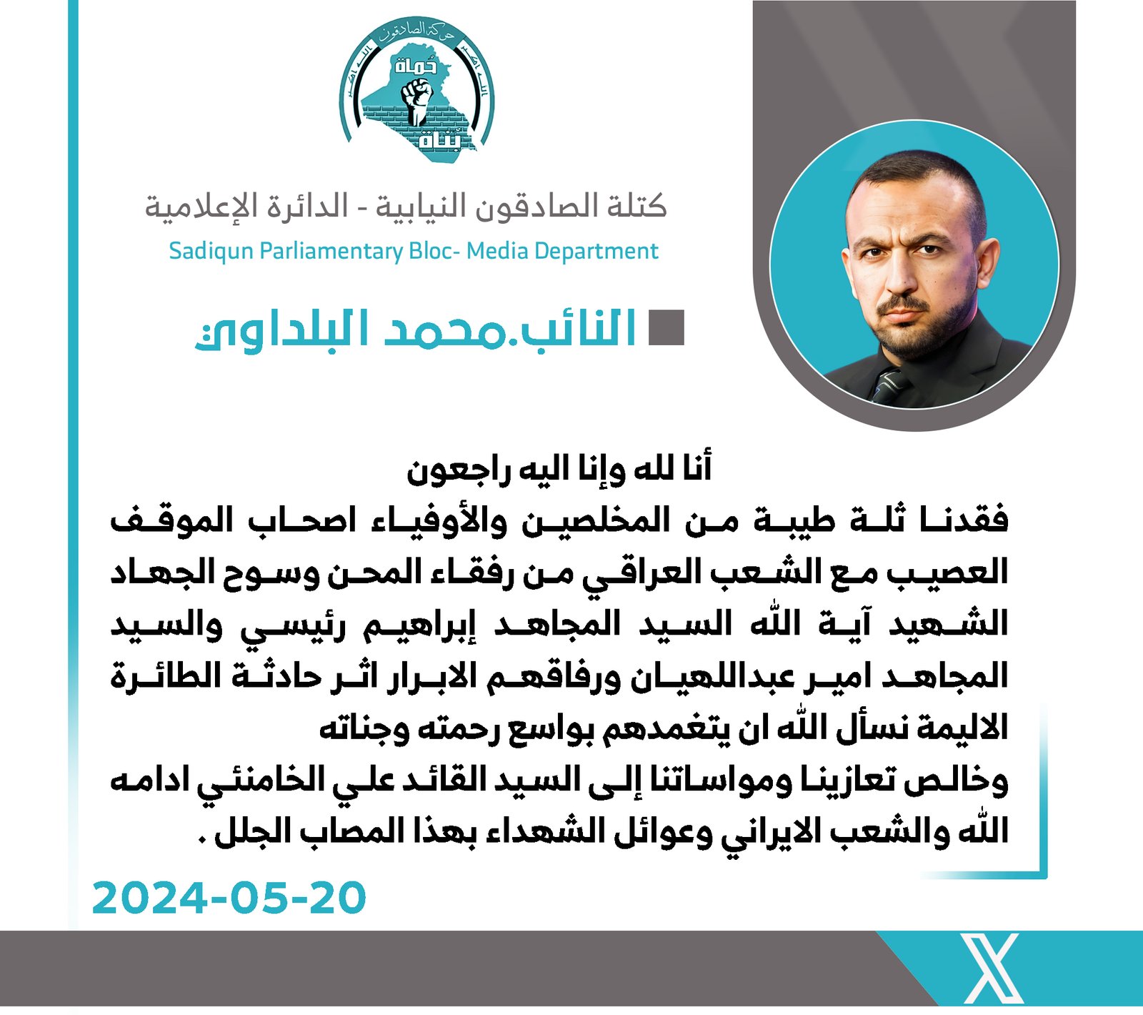 المزيدقدمت النائب عن كتلة الصادقون ، سهيلة السلطاني ، اليوم الأثنين ، الى المرشد الأعلى للجمهورية الإسلامية السيد علي الخامنئي والى حكومة إيران وشعبها بإستشهاد رئيس الجمهورية السيد إبراهيم رئيسي،...