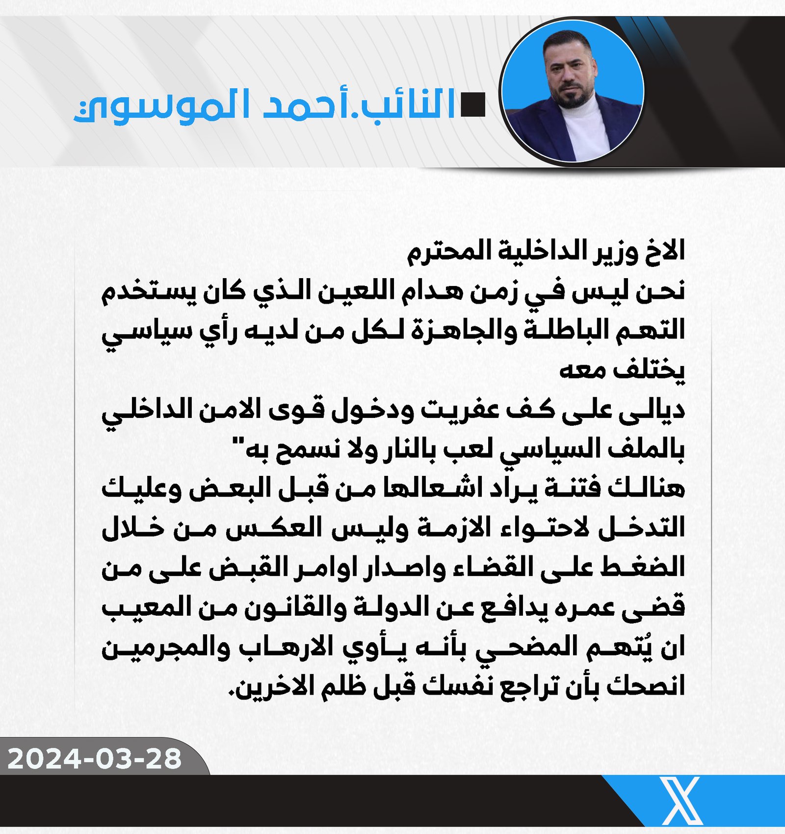 للتخلص من الهيمة الأمريكية .. البلداوي يدعو الى جدولة أنهاء التواجد الأجنبي و رفع القدرة التسليحية للأجهزة الأمنية