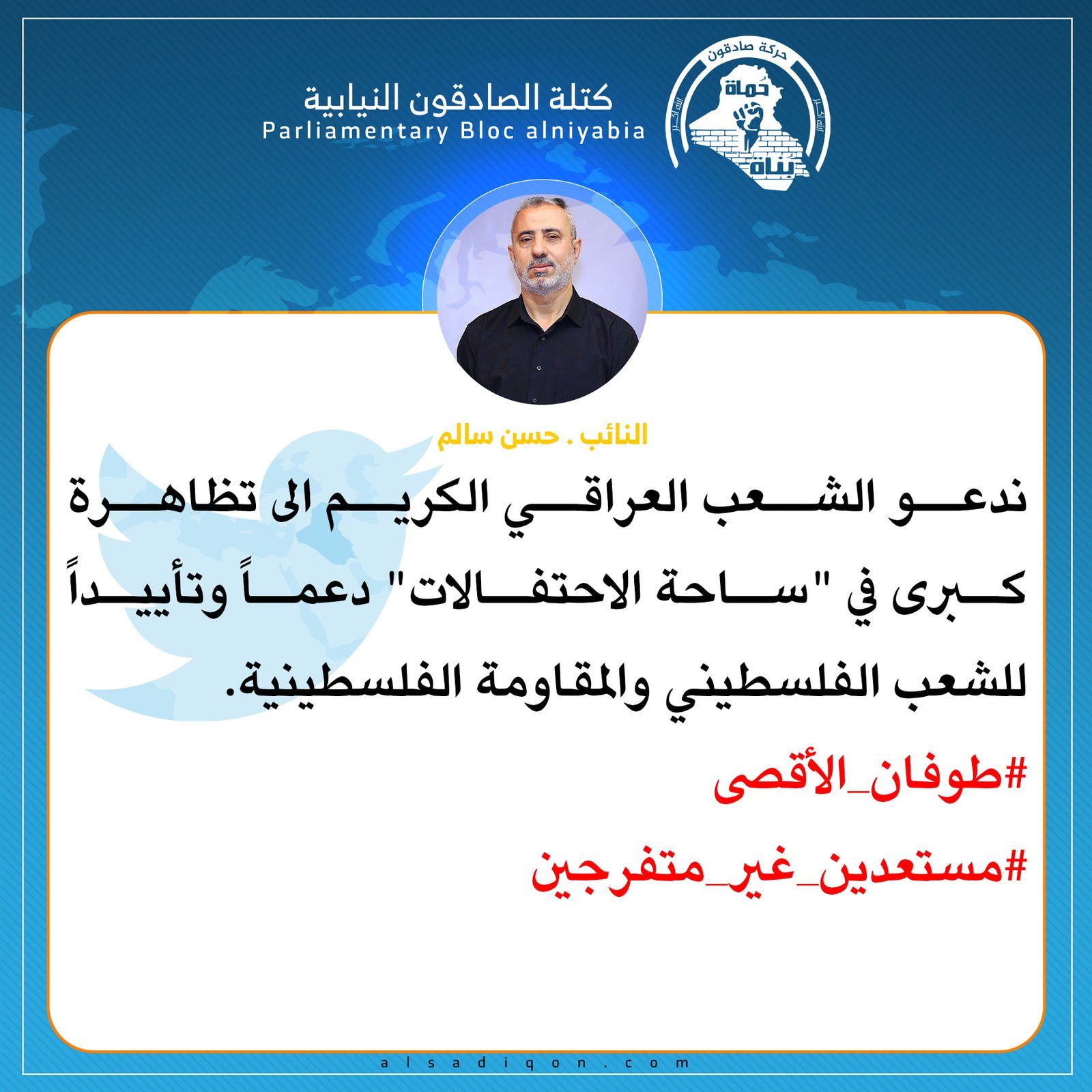 سالم يدعو الى تظاهرة حاشدة في “ساحة الاحتفالات” دعماً وتأييداً للشعب الفلسطيني والمقاومة الفلسطينية. 74 ... المزيد