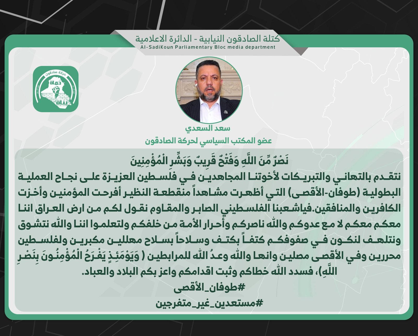 السعدي يبارك نجاح عملية “طوفان الأقصى” و يؤكد مساندته للشعب الفلسطيني في مواجهة الأحتلال 80 ... المزيد