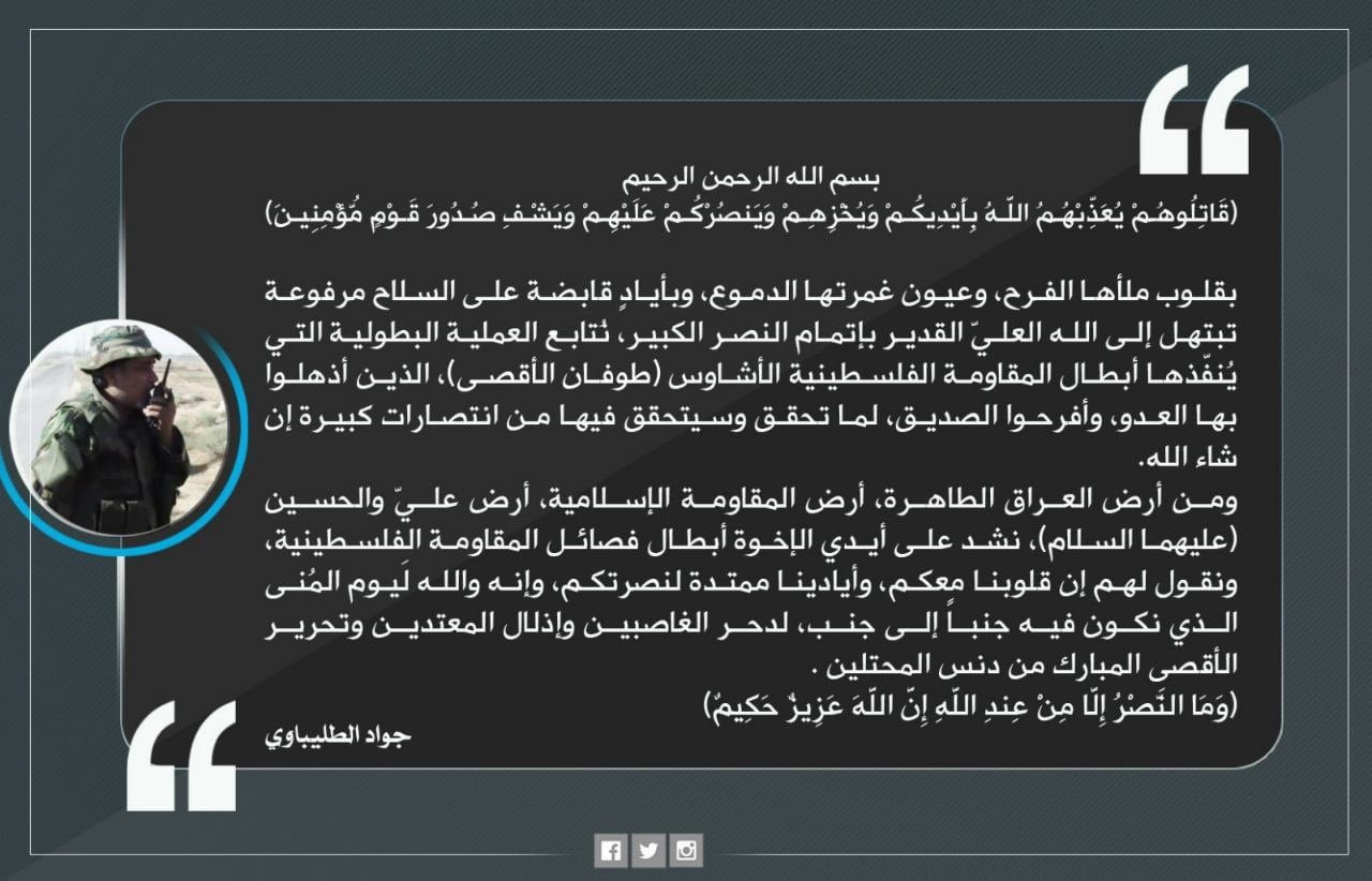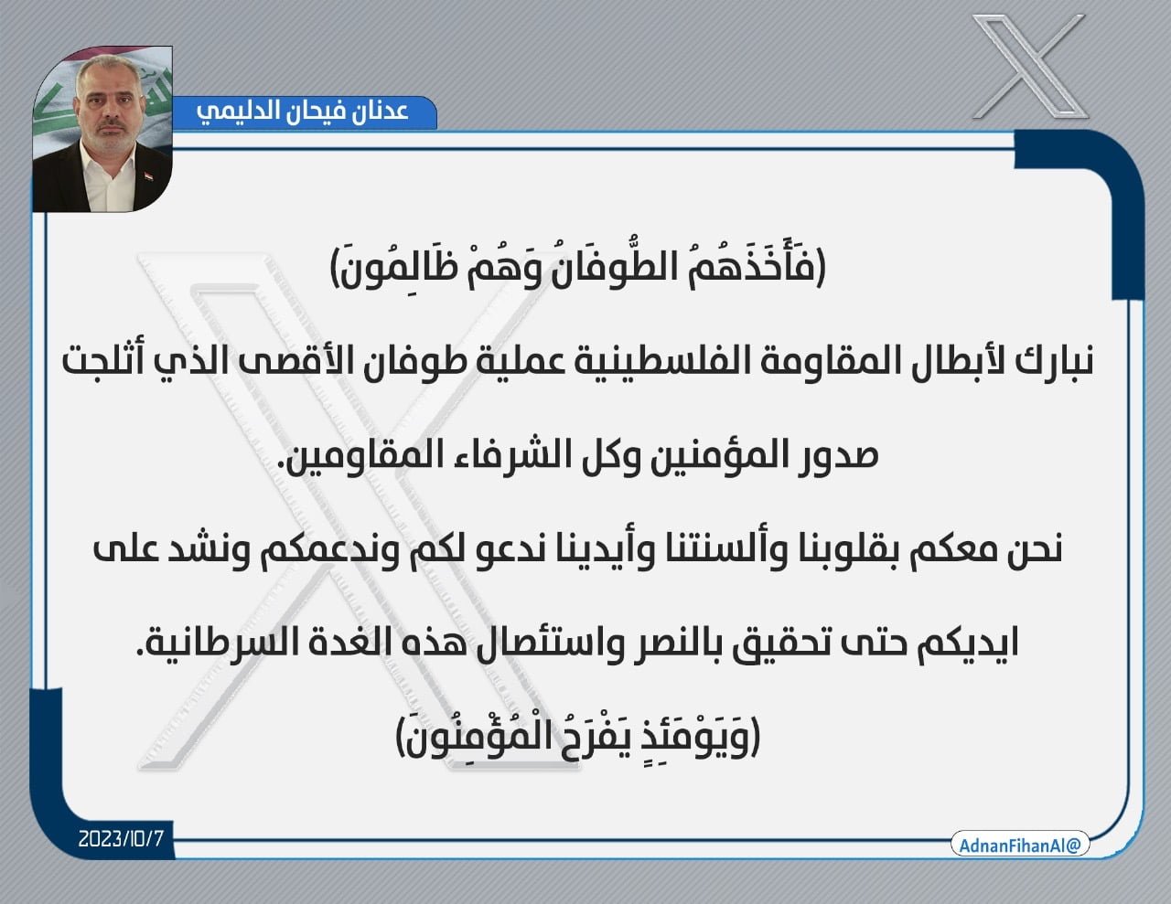 فيحان يبارك للمقاومة الفلسطينية عملية “طوفان الأقصى” و يؤكد مساندته لهم حتى تحقيق النصر 77 ... المزيد