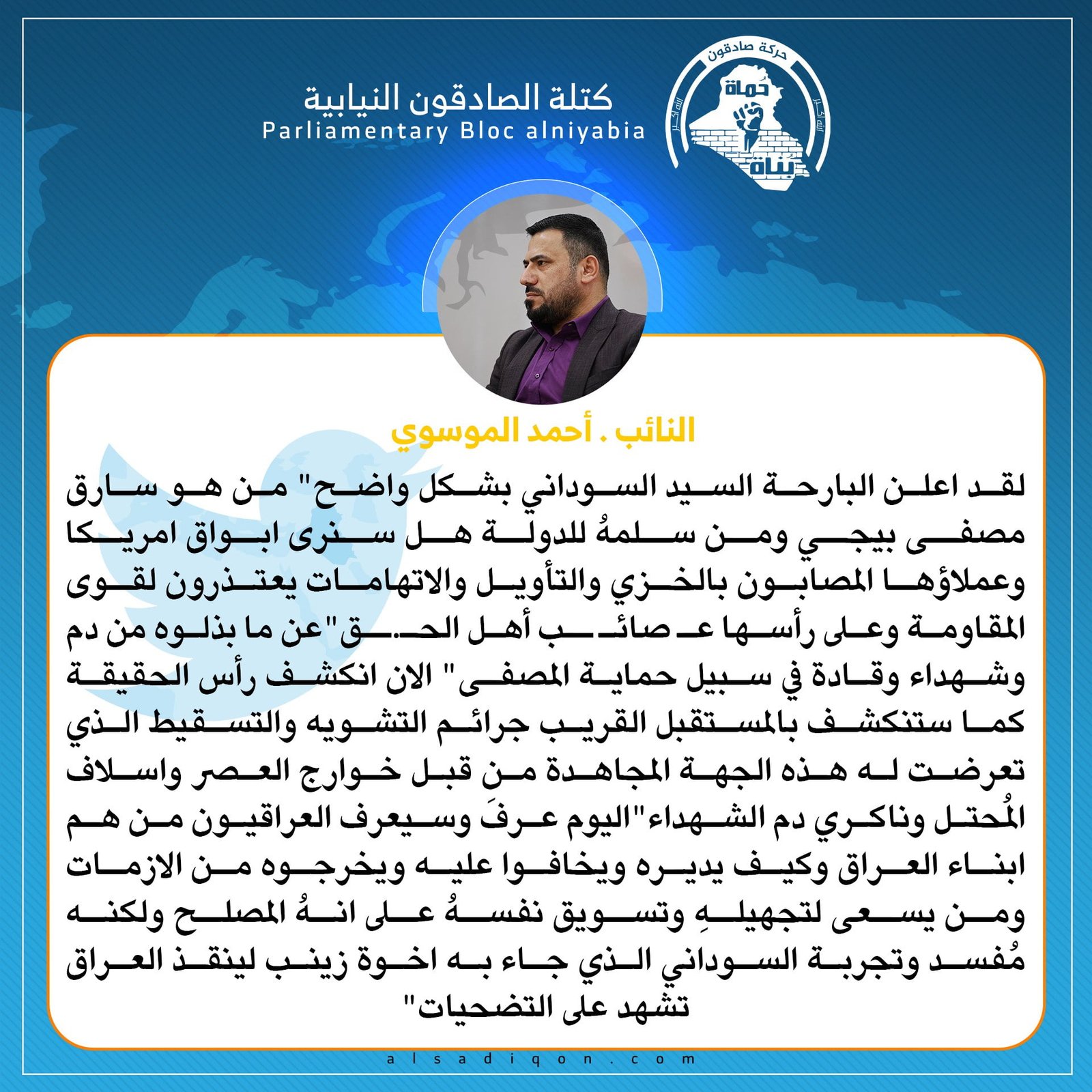 منتقداً الأتهامات التي طالت عصائب أهل الحق .. الموسوي : رئيس الحكومة كشف الجهات التي سرقت مصفى بيجي