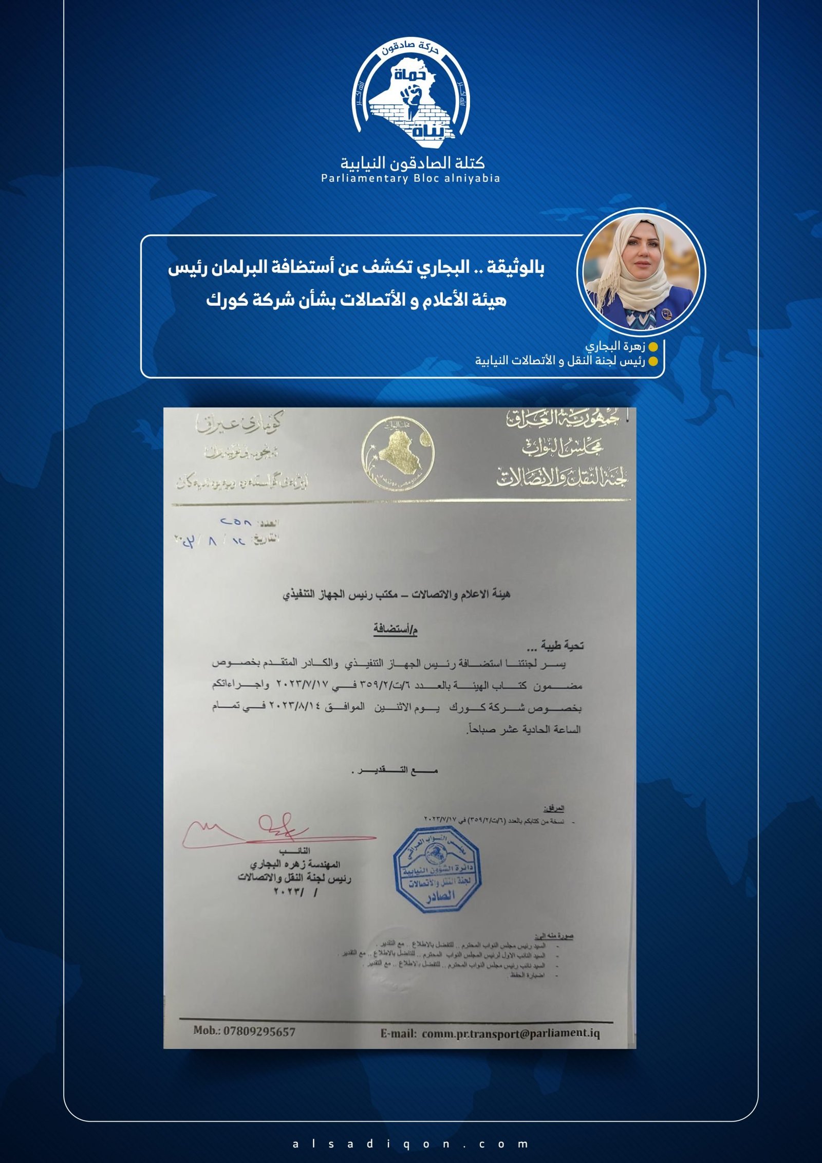 كشفت النائب عن كتلة الصادقون ، زينب الموسوي، الثلاثاء، تفلصيل جديدة تتعلق بمشروع مدينة الصدر الجديدة ، فيما تعهدت بمتابعة مراحل تنفيذ المشروع عبر الدور الرقابي للبرلمان . وقالت الموسوي في...