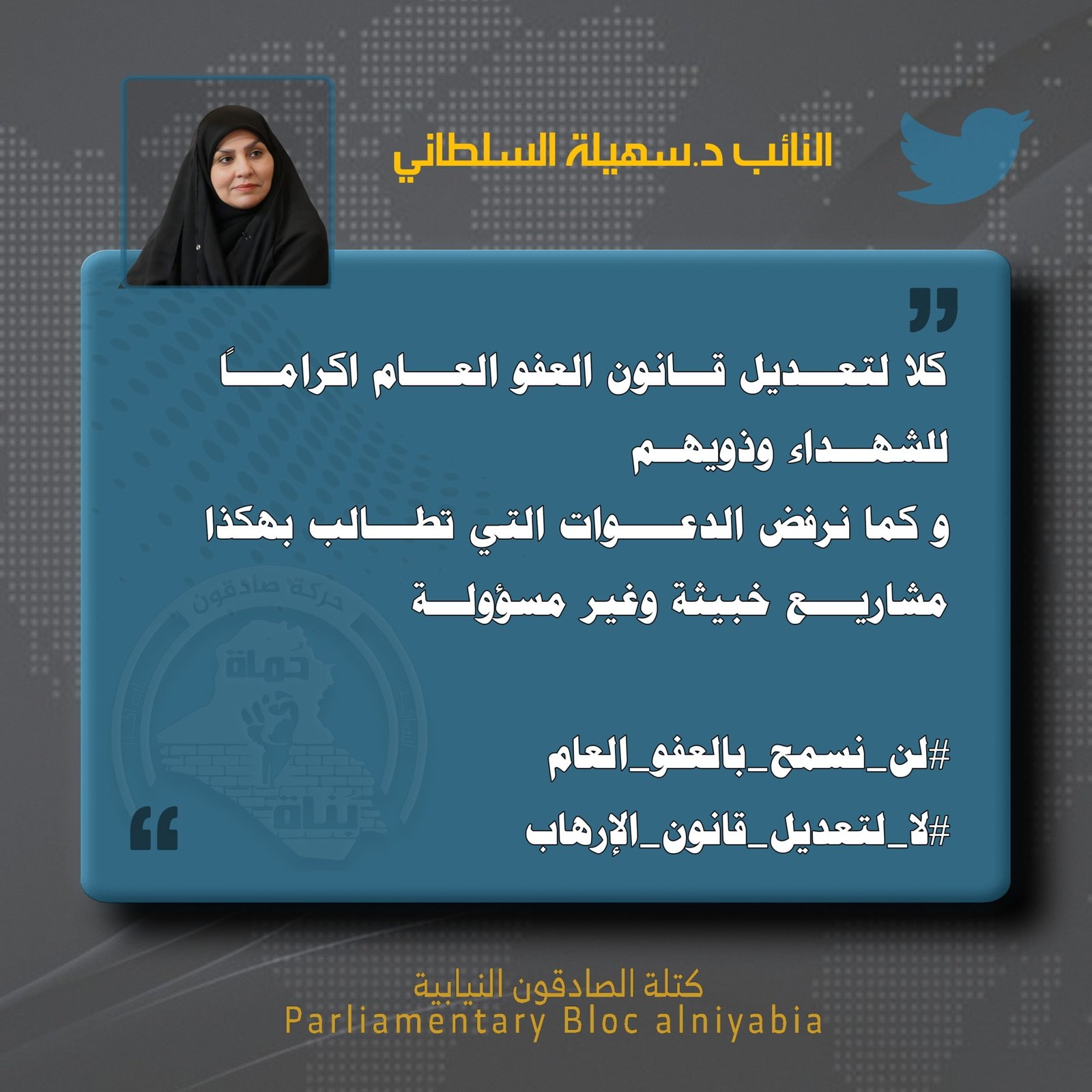 كشف المتحدث بأسم كتلة الصادقون، محمد البلداوي ، اليوم السبت، فقرة مثيرة تحاول بعض الأطراف السياسية تضمينها بقانون العفو العام، وفيما رفض هذه التعديلات، أكد عدم تمرير هكذا قوانين على الشعب...