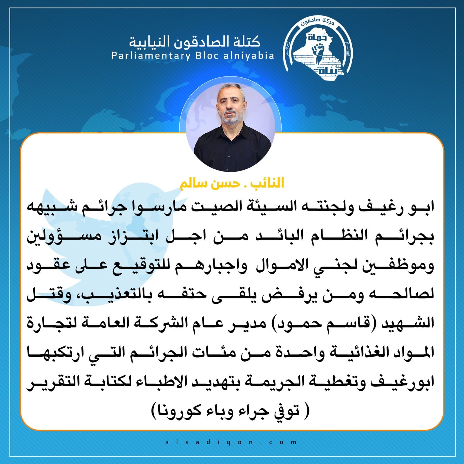 الجمالي يدعو الى محاكمة لجنة ابو رغيف سيئة الصيت لتورطها بجرائم و أنتهاكات لحقوق الانسان