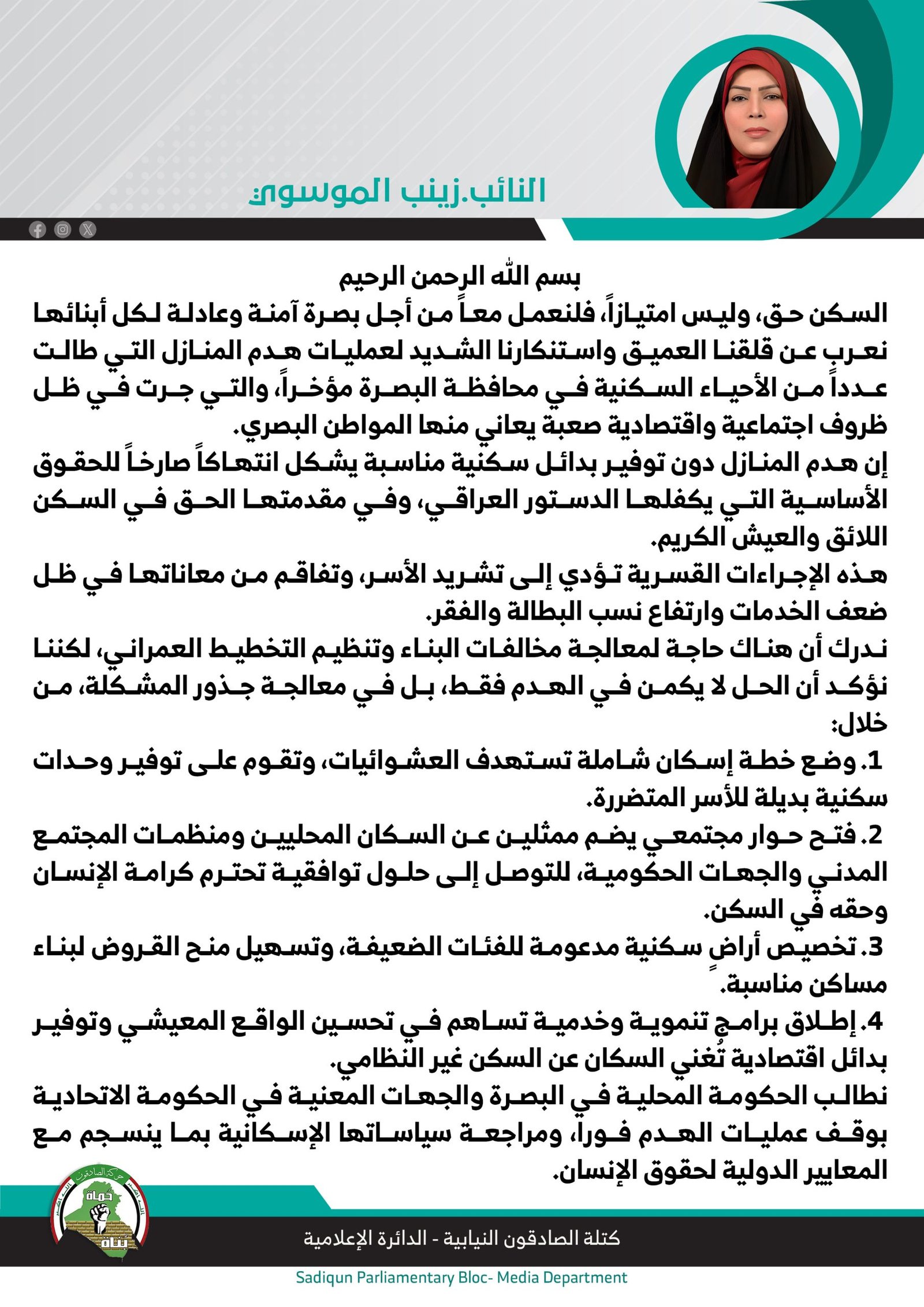 أدانت رئيس لجنة النقل والأتصالات النبابية عن كتلة الصادقون النائب زهرة البجاري، اليوم السبت، الحملات الإعلامية الممنهجة التي تشنها بعض الصفحات على مواقع التواصل الاجتماعي و "ذباب إلكتروني"...