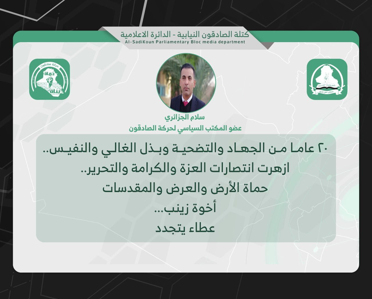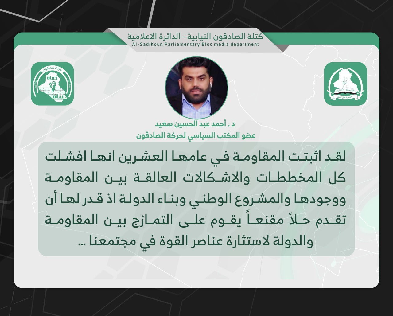عبد الحسين: عصائب اهل الحق حققت التمازج بين المقاومة والدولة لاستثارة عناصر القوة في المجتمع