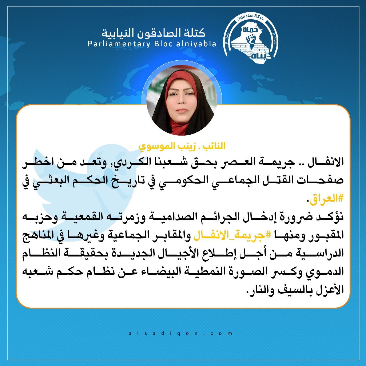أكد المتحدث بأسم كتلة الصادقون و نائب رئيس لجنة التخطيط الاستراتيجي والخدمة الاتحادية النيابية ، النائب محمد البلداوي، اليوم الاحد ، ضرورة حسم جميع التعديلات و الاضافات المقترحة ضمن نصوص...