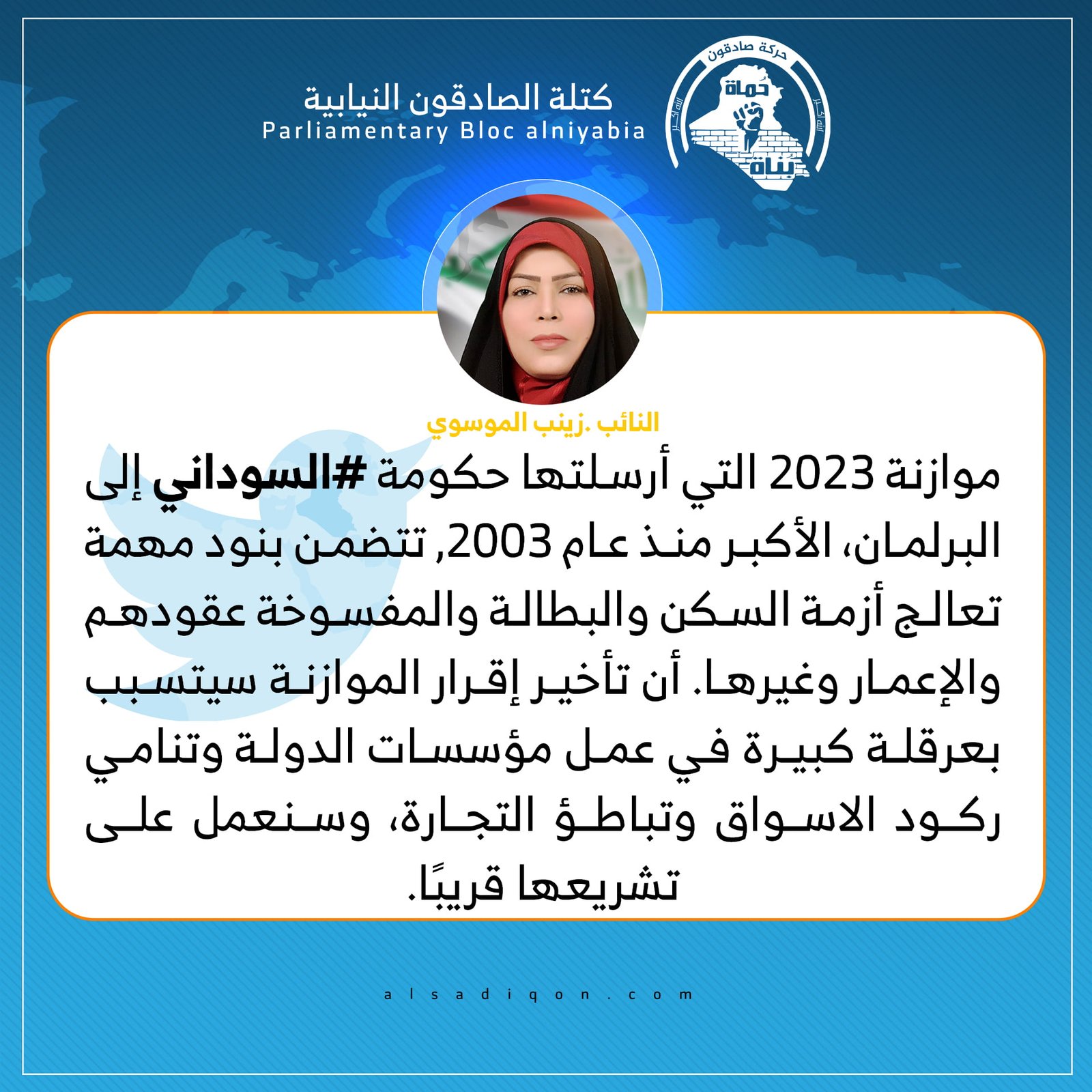 البجاري تؤشر بعض الملاحظات على قانون الموازنة و تطالب بانصاف البصرة في فقراتها