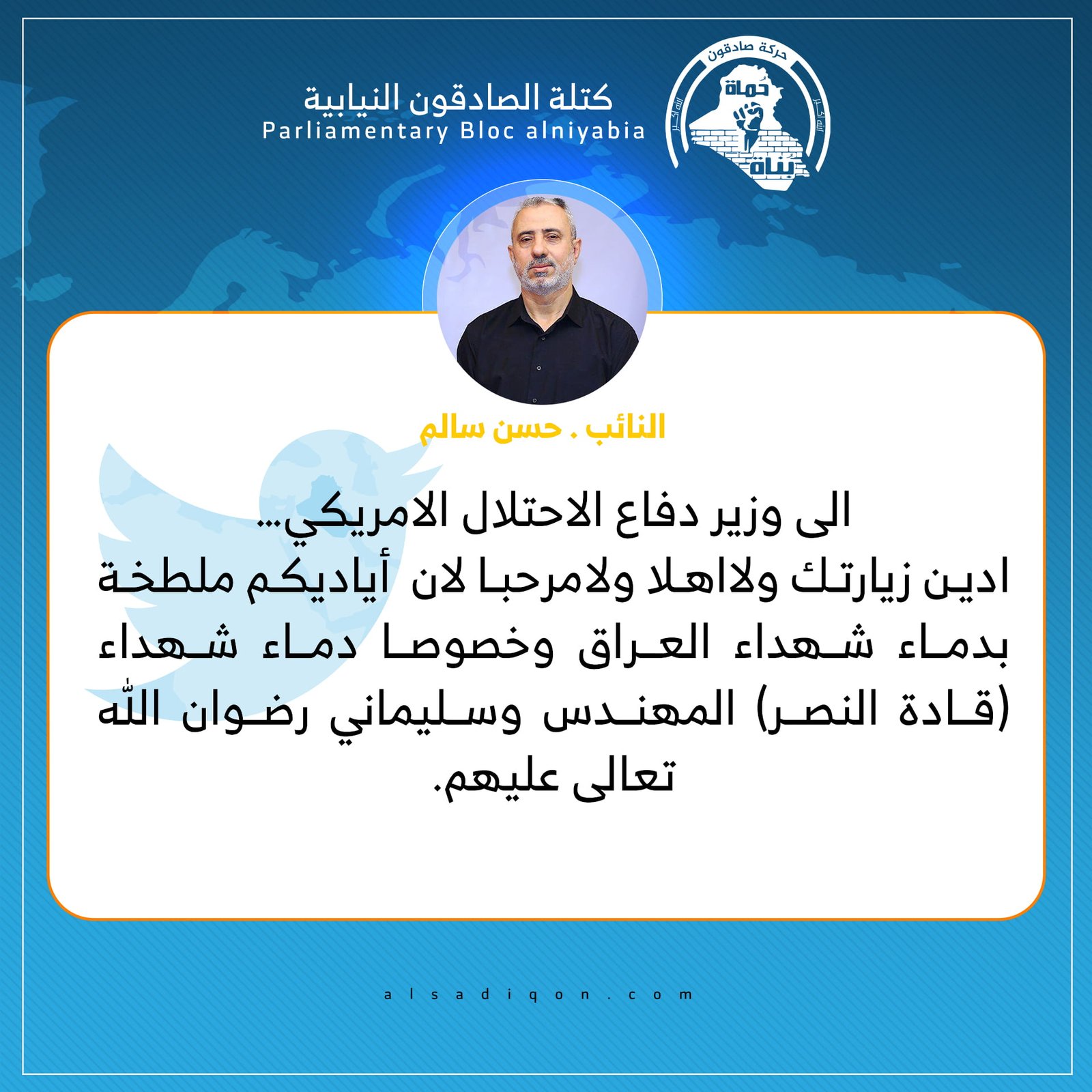 أكد النائب عن كتلة الصادقون، حسن سالم، أن العراقيون اثبتوا بطولاتهم الرافضة للأحتلال عبر فتوى الجهاد الكفائي و مشروع الحشد الشعبي ، معتبراً اياه الامتداد الطبيعي لثورة العشرين . وقال سالم في...
