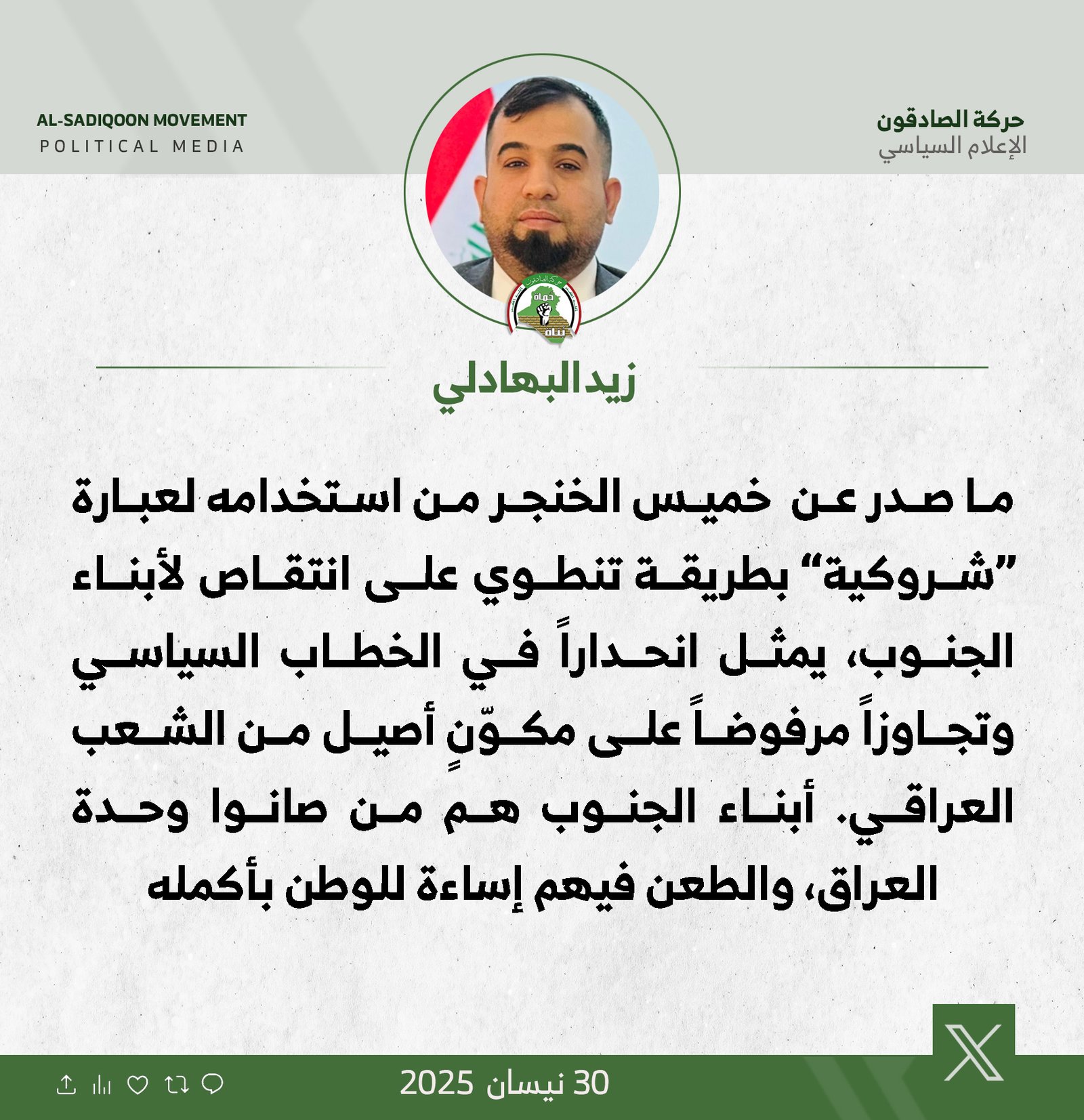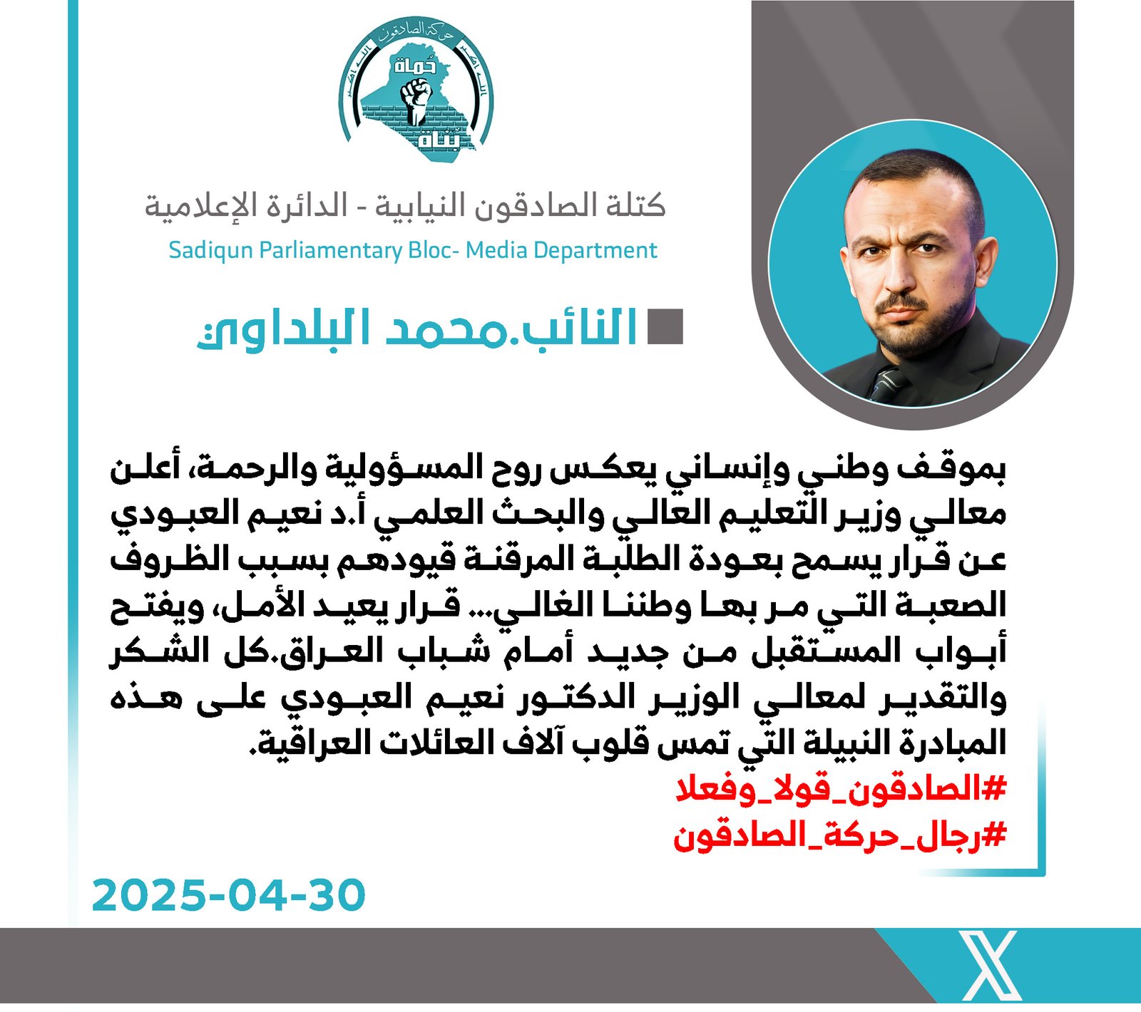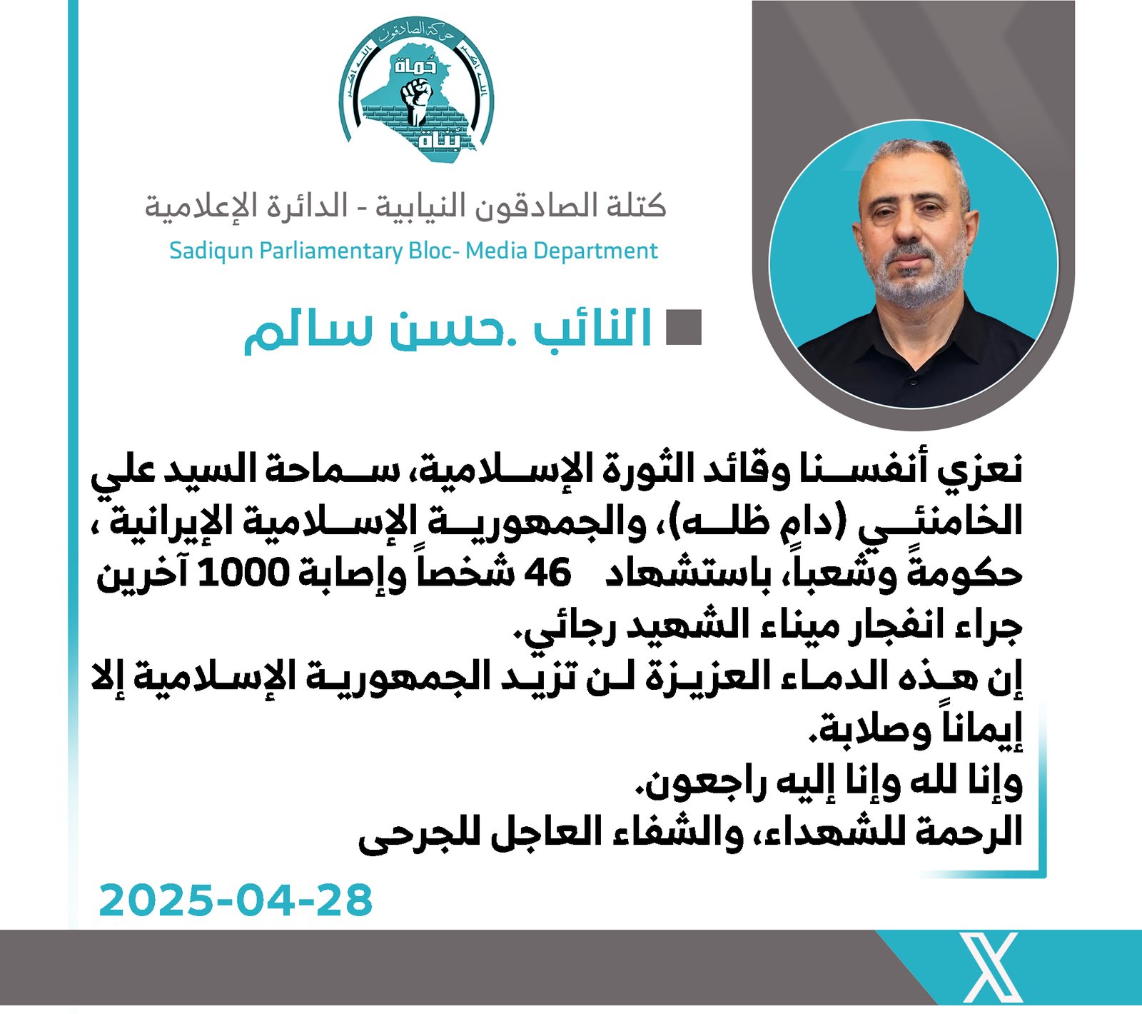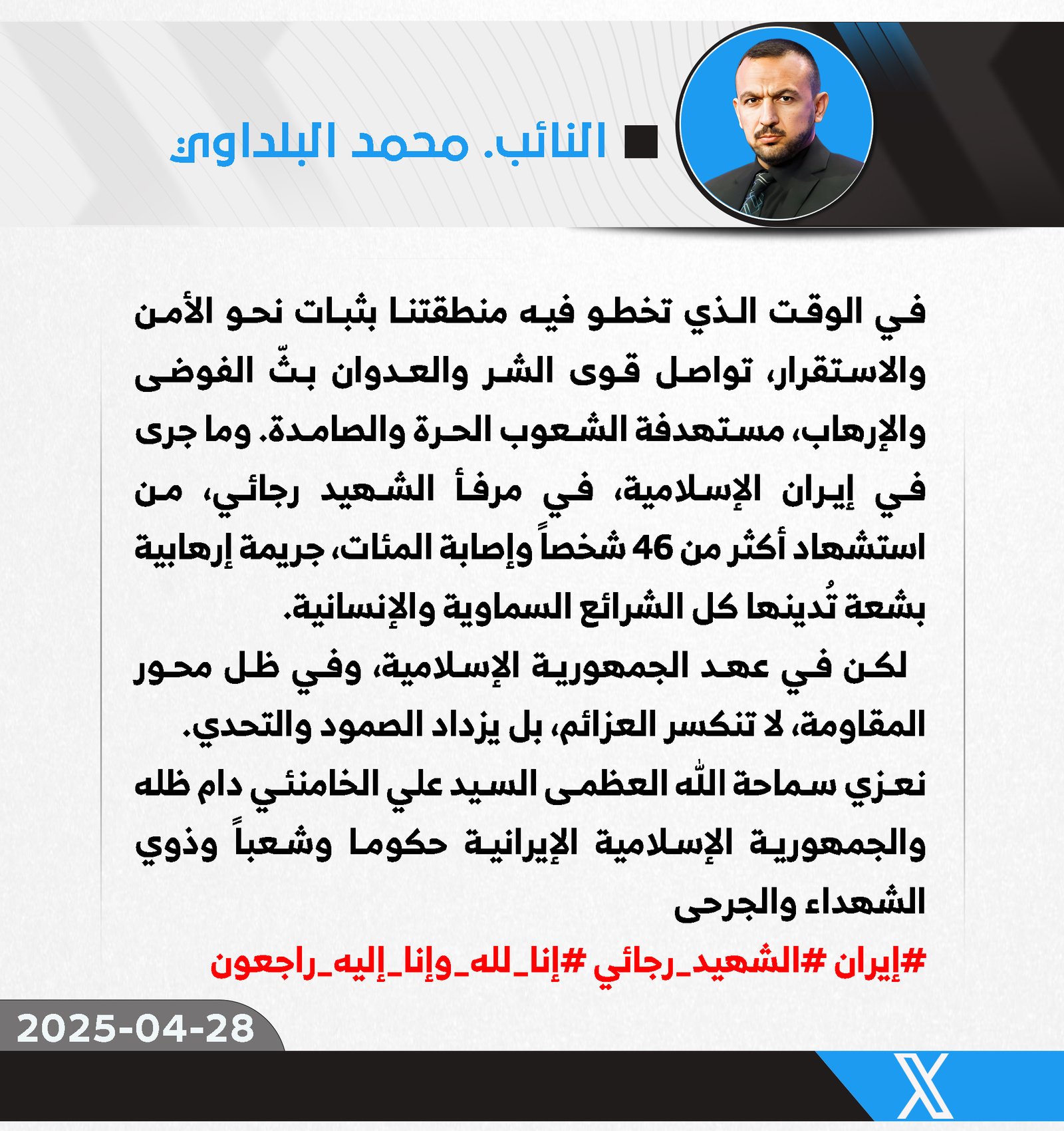 المزيدأكد المتحدث باسم كتلة الصادقون النيابية، النائب محمد البلداوي، اليوم الاثنين، أن قوى الشر والعدوان تواصل محاولاتها لإثارة الفوضى والإرهاب في المنطقة، مستهدفة الشعوب الحرة والصامدة. وقال...