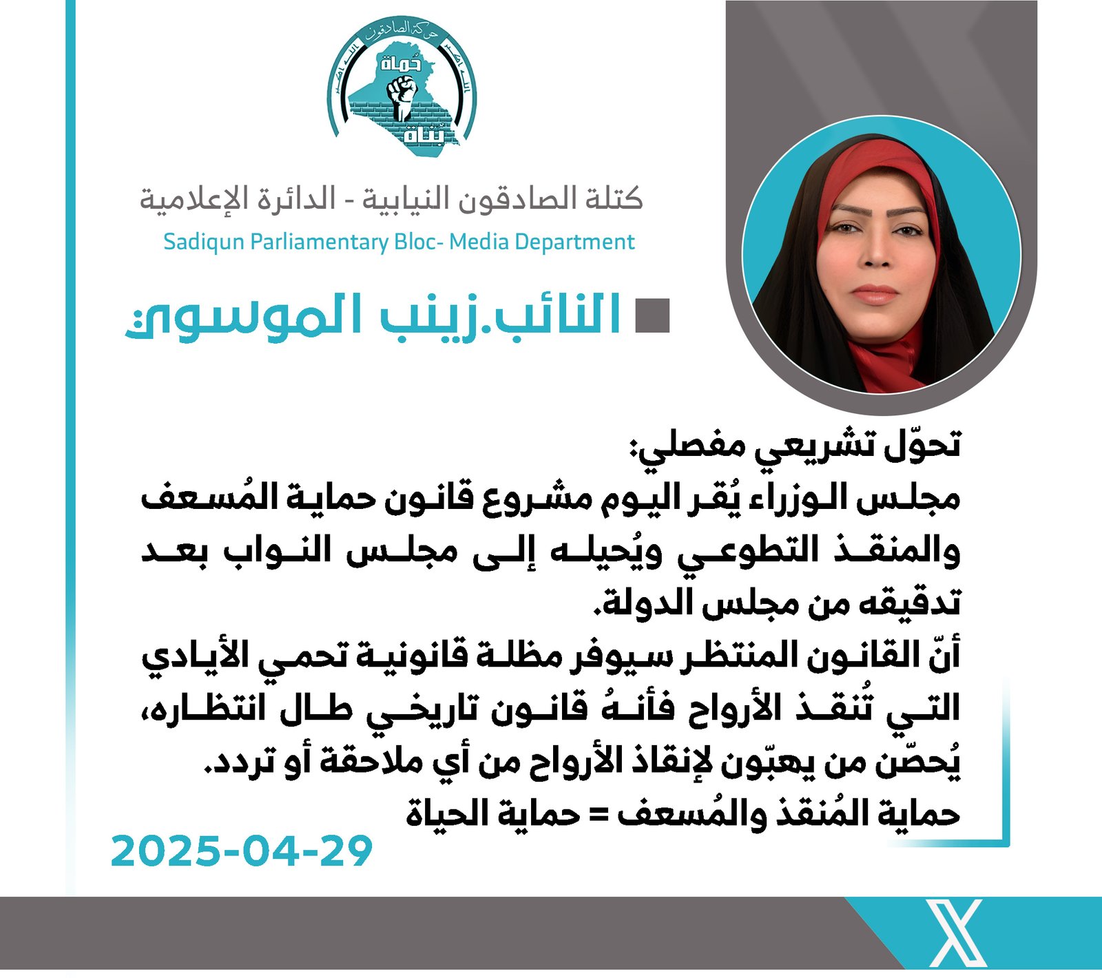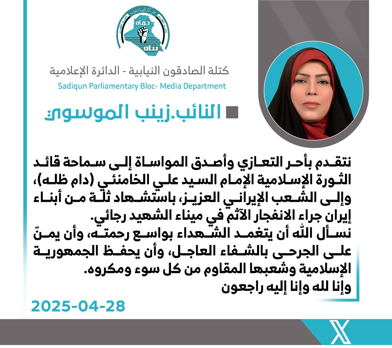 أكدت النائب عن كتلة الصادقون وعضو لجنة الصحة البرلمانية، زينب جمعة الموسوي، اليوم الأربعاء، على ضرورة التوسع في إنشاء مصحات علاج الإدمان وتوزيعها بشكل عادل في جميع المحافظات العراقية، وذلك...