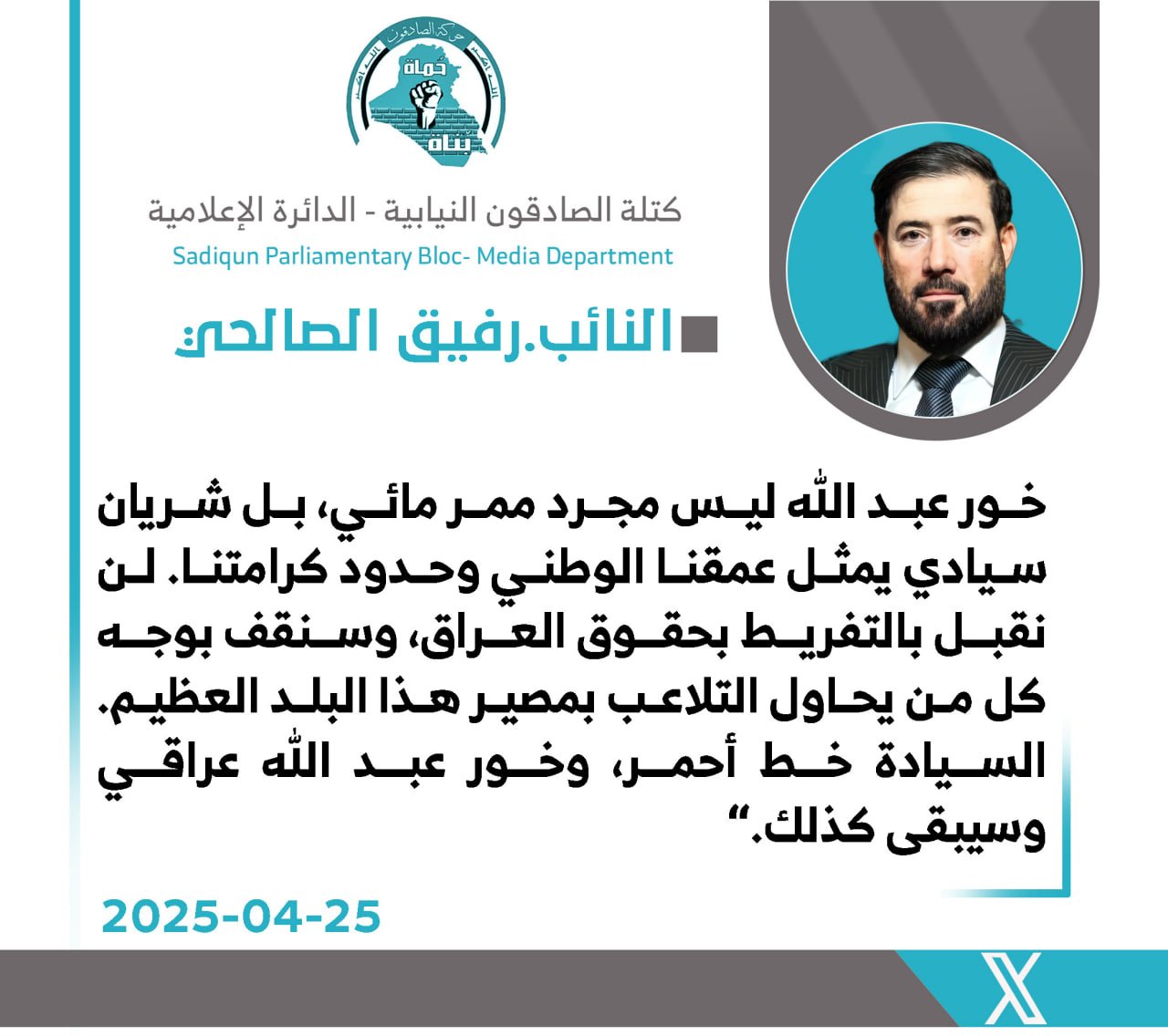 المزيدأكدت رئيس لجنة النقل والاتصالات في مجلس النواب العراقي عن كتلة الصادقون، النائب زهرة البجاري، رفضها القاطع لأي تنازل عن منطقة خور عبد الله أو التهاون في الدفاع عن السيادة الوطنية وذلك في موقف...