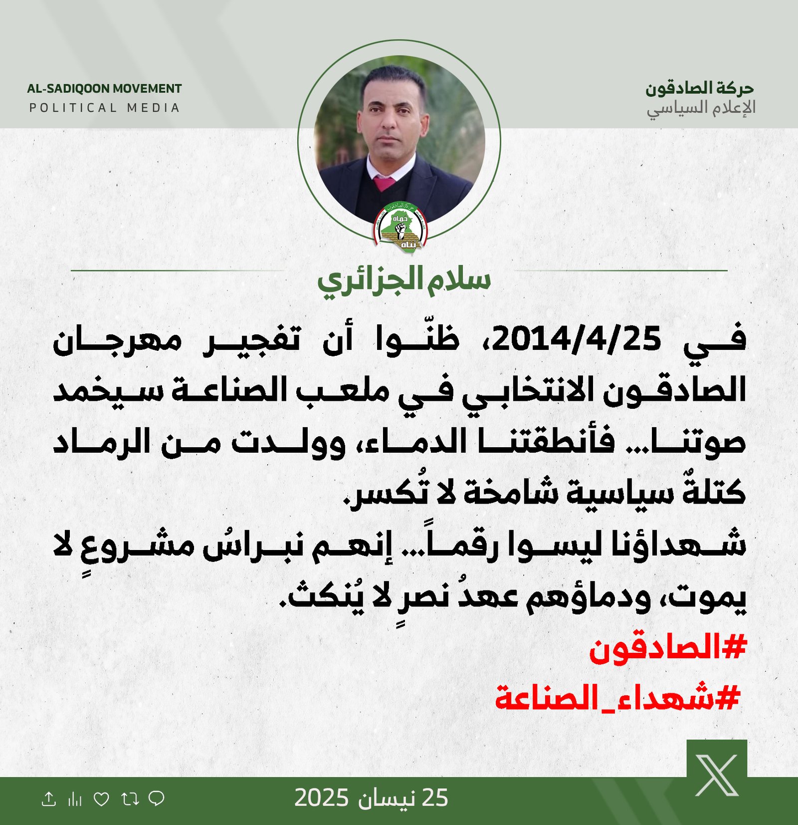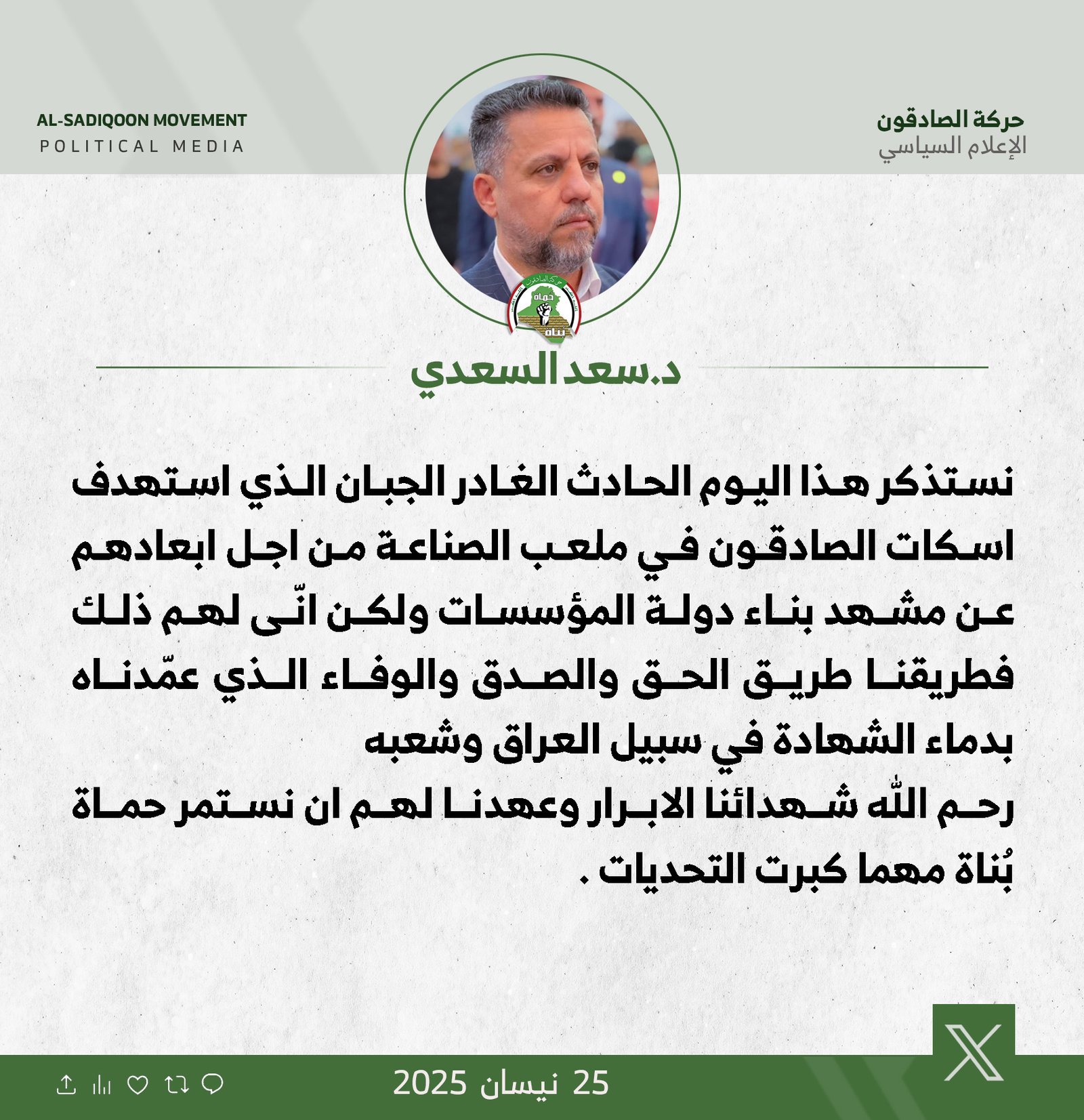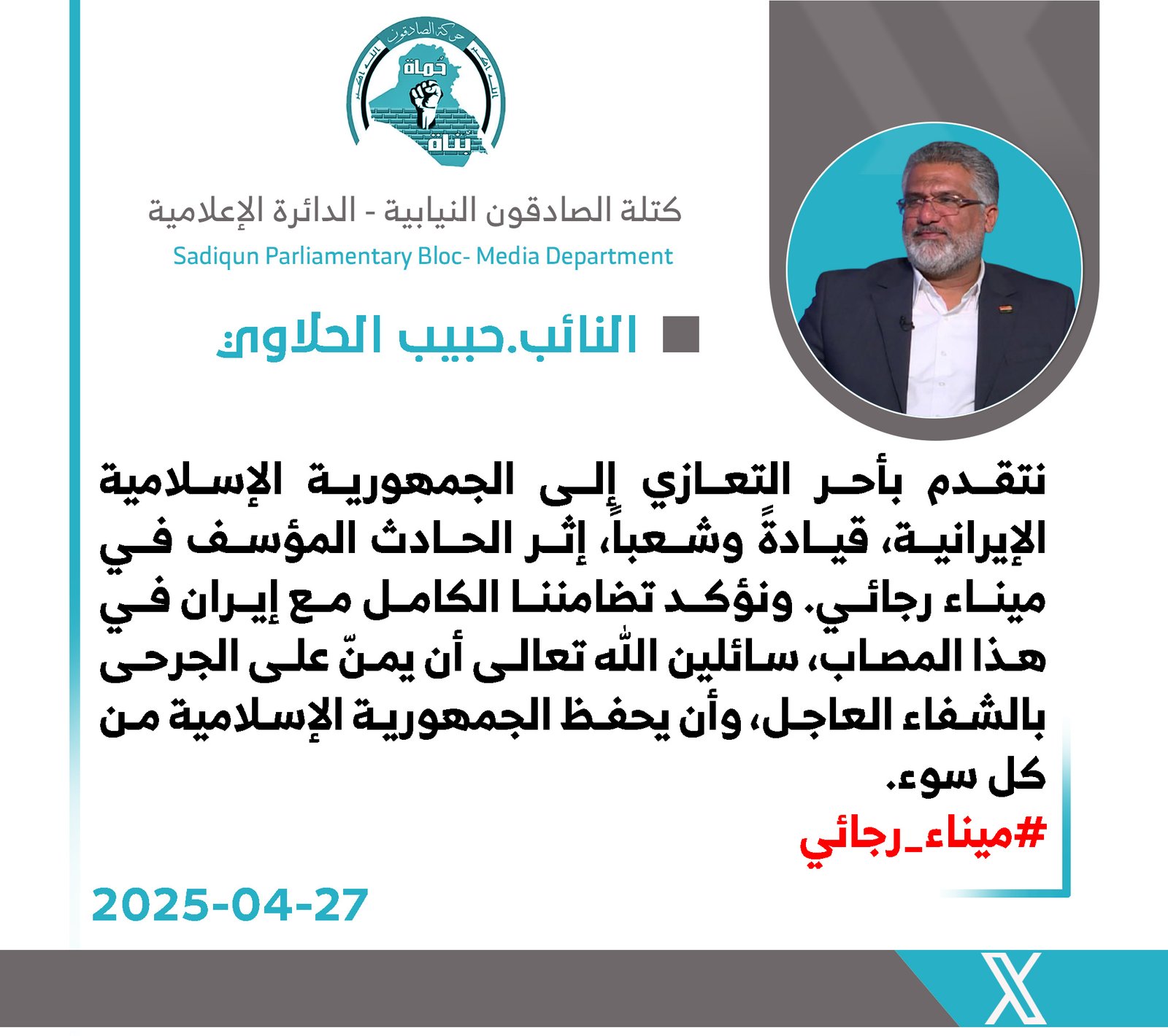 ردت رئيس لجنة النقل والاتصالات النيابية عن كتلة الصادقون النائب زهرة البجاري، اليوم الأحد، على ما ورد في التسجيل الصوتي المنسوب إلى "خميس الخنجر" والذي تضمّن إشارات استفزازية تجاه شركاء...