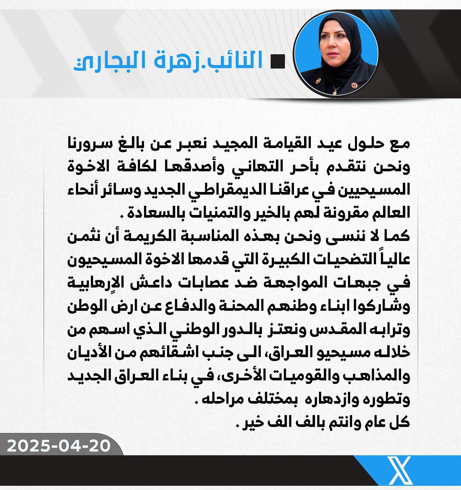 دعت رئيسة لجنة النقل والاتصالات النيابية عن كتلة الصادقون، النائب زهرة البجاري، اليوم الثلاثاء ، الحكومة واللجان النيابية المختصة إلى الإسراع في مناقشة وإقرار قانون التقاعد الموحد، مؤكدة...
