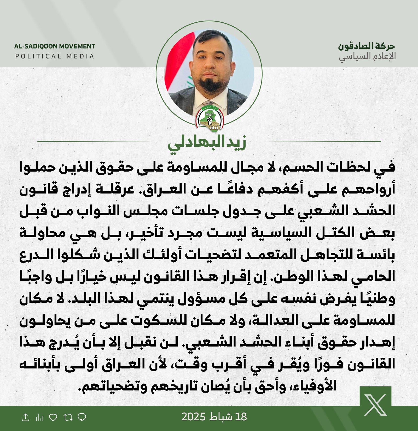 أكد النائب عن كتلة الصادقون وعضو لجنة النزاهة النيابية، علي تركي الجمالي، الخميس، رفضه القاطع لأي وجود لزعيم هيئة تحرير الشام، و الرئيس السوري الحالي أبو محمد الجولاني، في القمة العربية أو...
