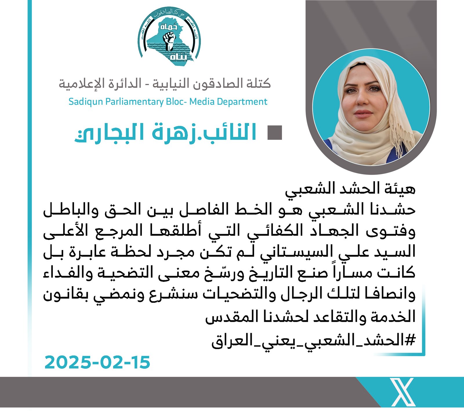 المزيدأعربت رئيس لجنة النقل والاتصالات النيابية عن كتلة الصادقون زهرة البجاري،السبت، عن تعازيها الحارة لعائلات ضحايا الحادث الأليم الذي وقع في محافظة البصرة، إثر انفجار لغمٍ أرضي في منطقة زيد بن...