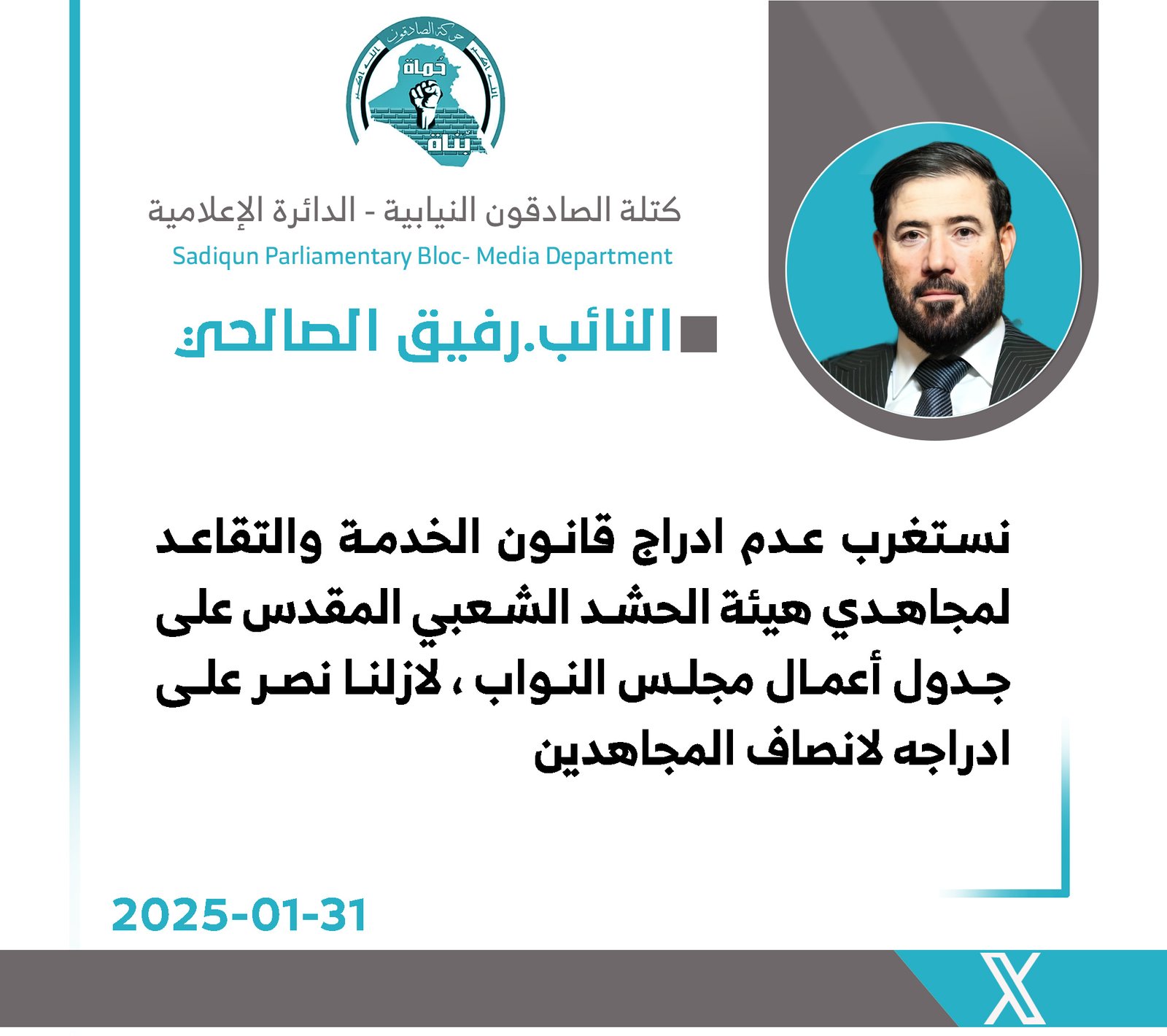 أكد رئيس كتلة "صادقون" النيابية النائب حبيب الحلاوي، اليوم السبت ، أن قانون العفو العام جاء ضمن إطار الاتفاق السياسي، مشيراً إلى أنه تمت مناقشته فنياً والتصويت عليه من قبل الحكومة قبل أن يُعرض...