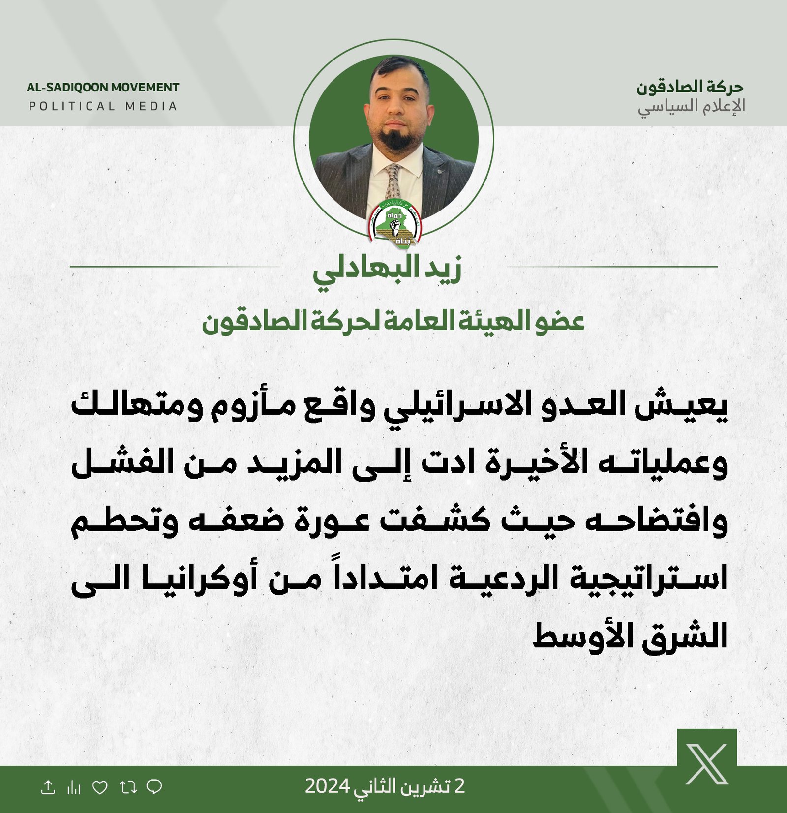 البجاري: امريكا أنتهكت الاتفاقيات والمواثيق الدولية من خلال استباحة الأجواء العراقية