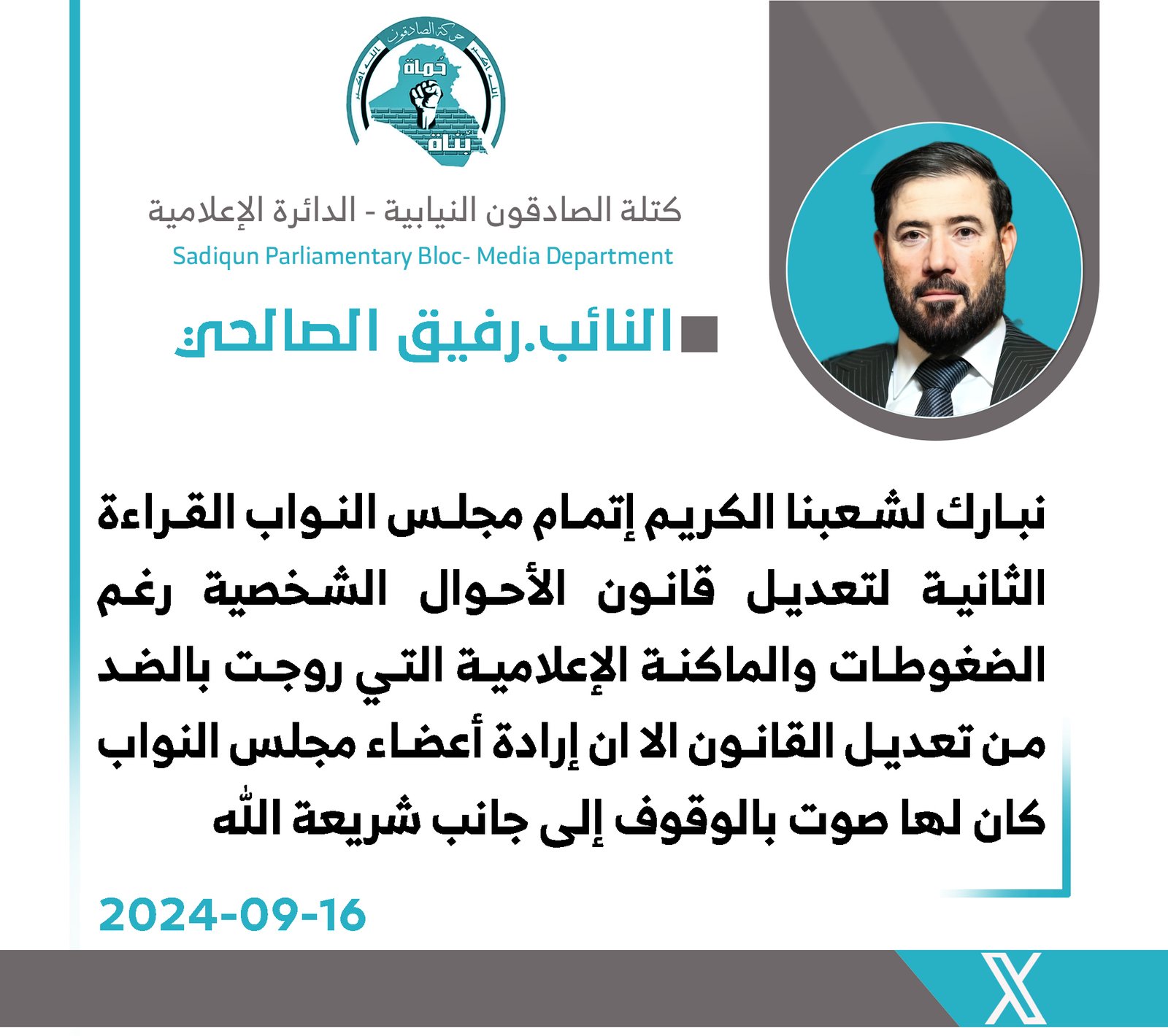الجمالي: تعديل قانون الأحوال الشخصية ماضٍ باتجاه التصويت وسيحفظ حقوق المكونات العراقية