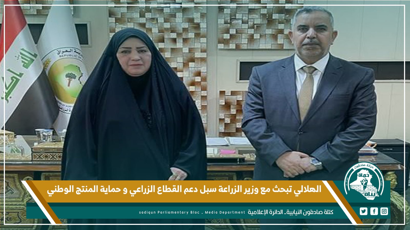 بحثت عضو لجنة الزراعة والمياه والاهوار النيابية، ابتسام الهلالي، اليوم الأحد ، مع وزير الزراعة سبل دعم القطاع الزراعي في البلاد و توفير كافة احتياجات الفلاحين . وقال بيان للمكتب الاعلامي...