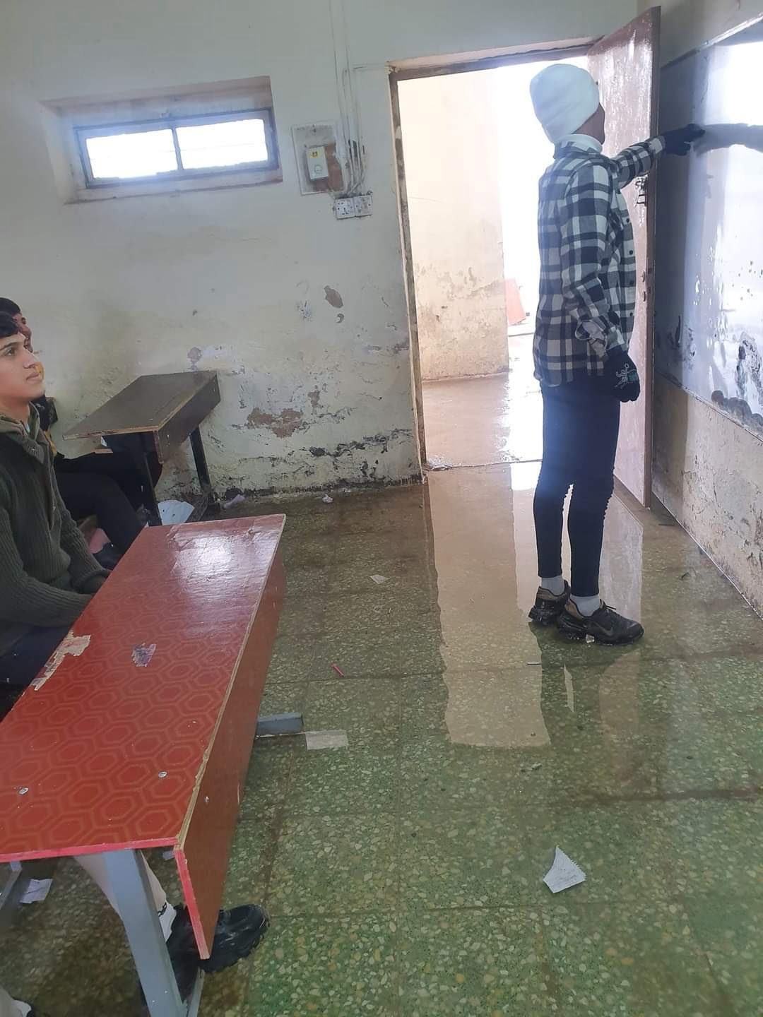 صور.. طلبة يصرون على دراستهم في مدرسة أغرقتها مياه الأمطار