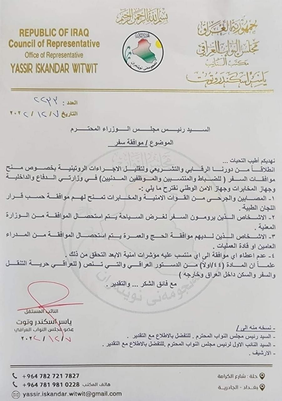 المزيداصدر النائب المستقل ياسر سكندر وتوت، اليوم الاربعاء، مقترحا لتسهيل اجراءات منح موافقات للضباط والمنتسبين والموظفين في وزارتي الدفاع والداخلية للسفر لغرض العلاج والحج والعمرة . وذكر وتوت...