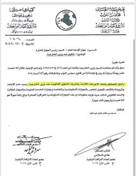 وجه جهاز الادعاء العام محكمة تحقيق الكرخ الثالثة باتخاذ الاجراءات القانونية على ضوء كتاب موجه من النائبة سروة عبد الواحد الى الجهاز، بشأن مخالفة وزير الخارجية قانون مجلس النواب والامتناع عن اجابة استفسار نيابي بشأن الجوازات الدبلوماسية.