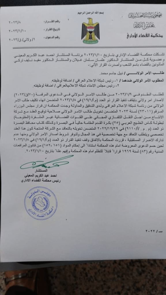 بالوثيقة.. القضاء الاداري يوقف إجراءات انهاء تكليف نبيل جاسم برئاسة شبكة الإعلام