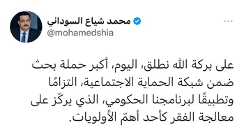 السوداني يعلن انطلاق أكبر حملة بحث ضمن شبكة الحماية الاجتماعية