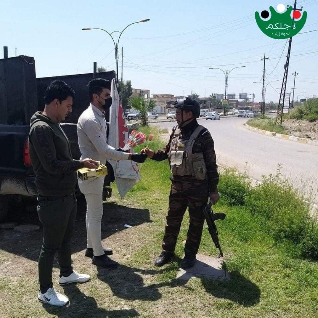 استجابةً لمبادرة الشيخ الخزعلي.. مكتب تنظيمات نينوى يقدمون الورود وكمامات لقواتنا الأمنية والحشـدالشعبي وشرطة المرور المرابطين في مناطق سهل نينوى والموصل عرفانا وامتنانا لجهودهم الجبارة