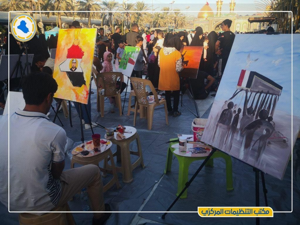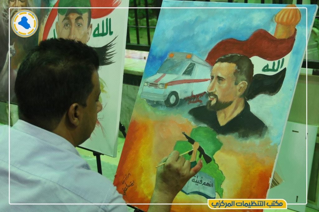 اقام فريق قادة العراق التطوعي التابع لقسم الطلبة المركزي لمكتب حركة عصائب أهل الحق وتحت شعار ” الشهادة بأنامل الفنانين” في كربلاء المقدسة، وبالتعاون مع البيت الثقافي في بغداد مرسما تضمن لوحات رسم وفن تشكيلي ونحت.