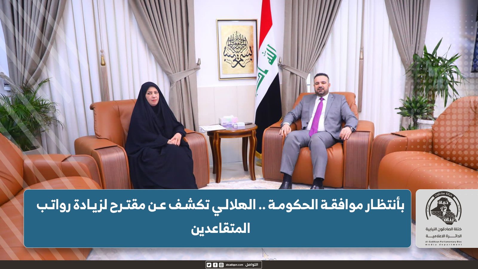 وقالت الهلالي بحسب تصريح اورده مكتبها الأعلامي ، انها اجرت زيارة الى هيئة التقاعد الوطنية ، التقت خلالها بمدير الهيئة ماهر حسين رشيد ، حيث تم مناقشة التحركات الجارية لزيادة لرواتب المتقاعدين